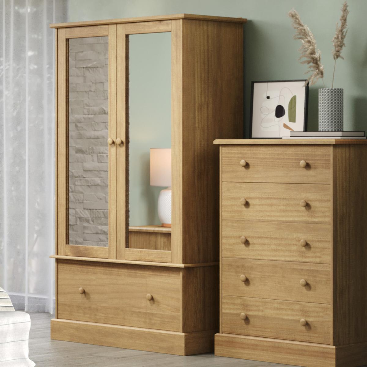 I’m a fan of the Cotswold wardrobe for its warm waxed-pine look and built-in mirrors, which instantly brighten a bedroom and make small spaces feel larger. It suits everything from modern farmhouse to Scandi or traditional schemes, thanks to its clean lines and natural finish. To style it, keep the top surface uncluttered with just a couple of woven baskets or a pair of matching ceramic vases. Inside, use uniform hangers and fabric storage boxes on the shelf to maintain a neat, hotel-like feel. A neutral woollen rug beneath and soft linen curtains will complete the relaxed, effortlessly pulled-together look.