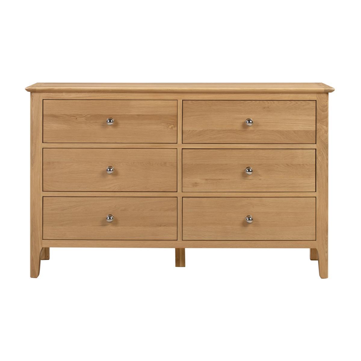 Crafted from solid oak and oak veneers, the Cotswold chest of drawers boasts long lasting durability and a timeless design. Complete with six spacious drawers decorated with silver handles, this fully assembled chest would make a great addition to any bedroom.