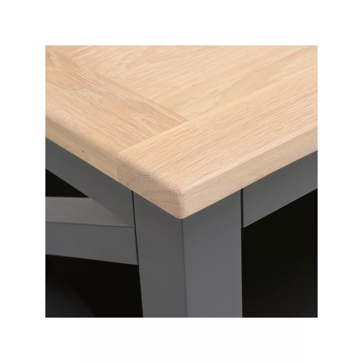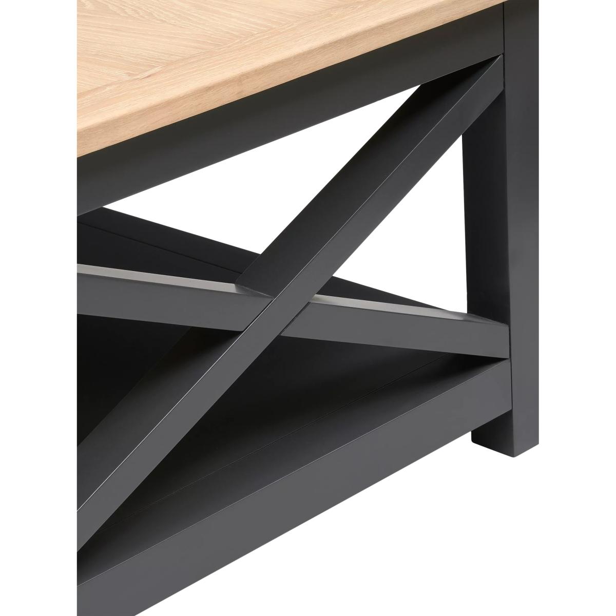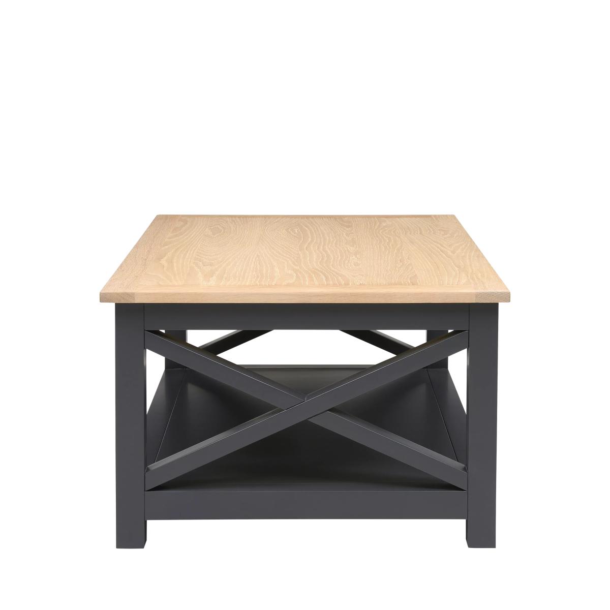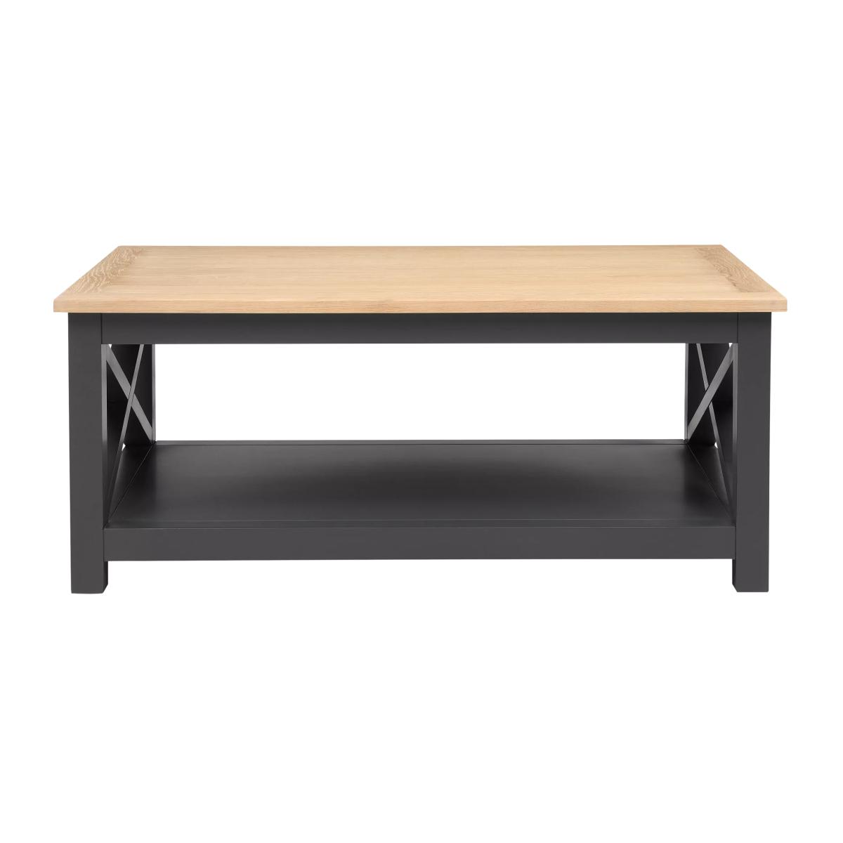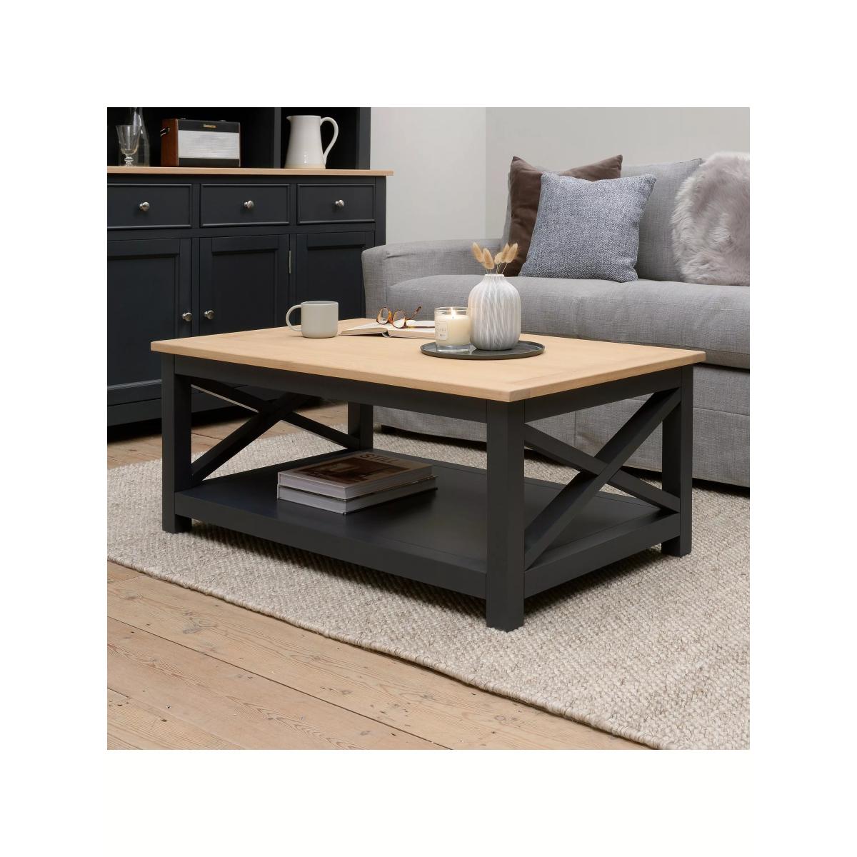 I like how the Chester coffee table pairs a warm oak top with a matt grey base - it sits comfortably in both modern farmhouse and Scandi-inspired schemes. The clean lines and lower shelf make it practical for stashing magazines or a neat basket, while the raised edge keeps decorative items from sliding off. For styling, I’d anchor a stack of art books on one side, balance it with a small plant or sculptural candle on a tray, and leave a clear space in the middle to maintain a relaxed, uncluttered feel.