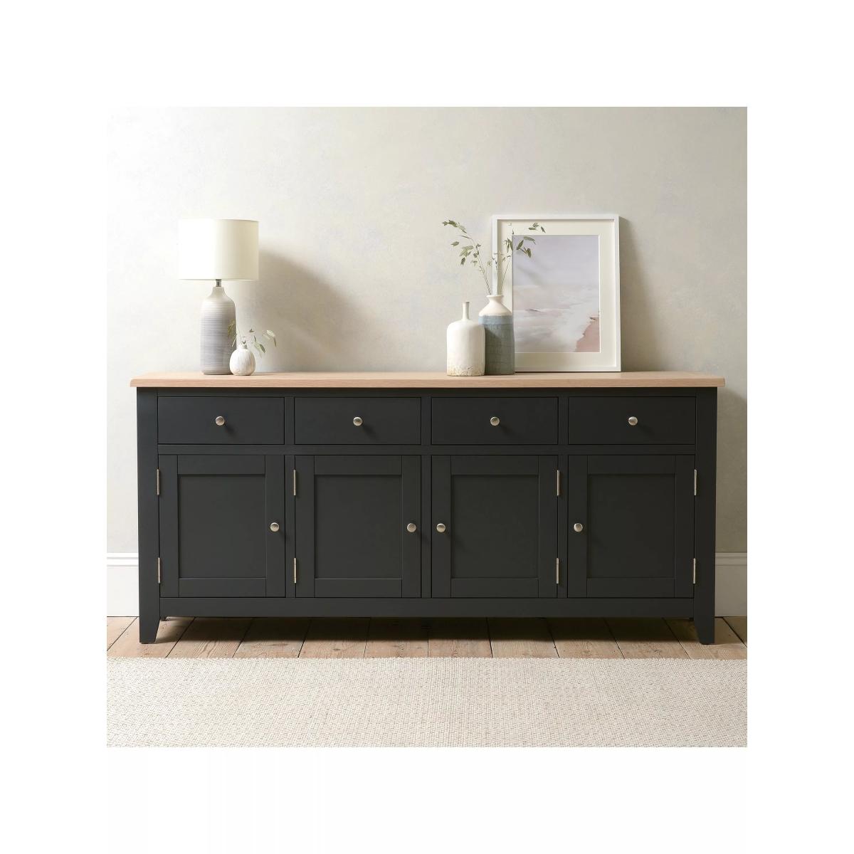 I’m a fan of the Chester extra-large sideboard for its smart balance of storage and style - the painted base with oak top feels at home in both modern country kitchens and city dining rooms. Its four cupboards and drawers keep crockery, linens or media kit neatly stashed, while the robust surface makes a great display area for lamps, a mirror or a cluster of ceramics. To style it, try pairing with woven baskets inside the cupboards for easy organisation, then position two matching table lamps or sculptural vases at either end to anchor the look. A round mirror or piece of art hung centrally above will soften the strong lines, and a trailing plant or stack of coffee-table books adds just the right casual touch.