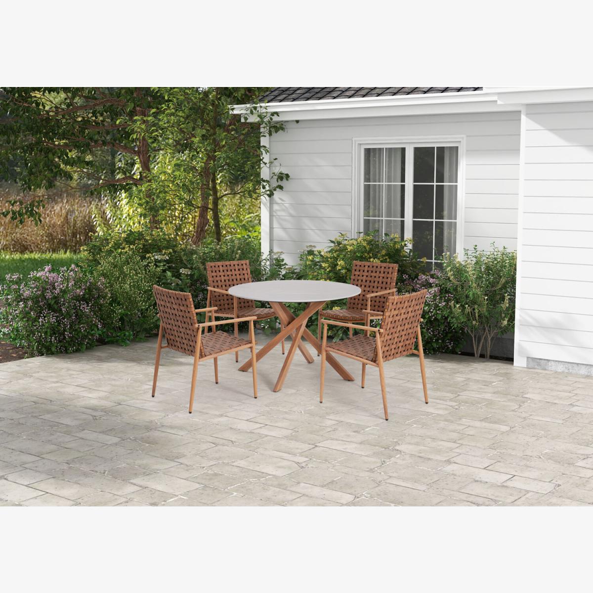 Perfect for relaxing on warm summer days, dining el fresco or catching up with friends, the Cotswold Dining Set will look amazing on your patio, decking or garden. Made from a lightweight and sturdy aluminium frame and finished with a powdered coating for extra protection. The polyrattan chairs are designed with a faux leather weave that gives an incredibly natural look that will look wonderful against your garden greenery and plants. The matching slate-top table adds a contemporary touch with enough space for all your chilled drinks and delicious BBQ meals.