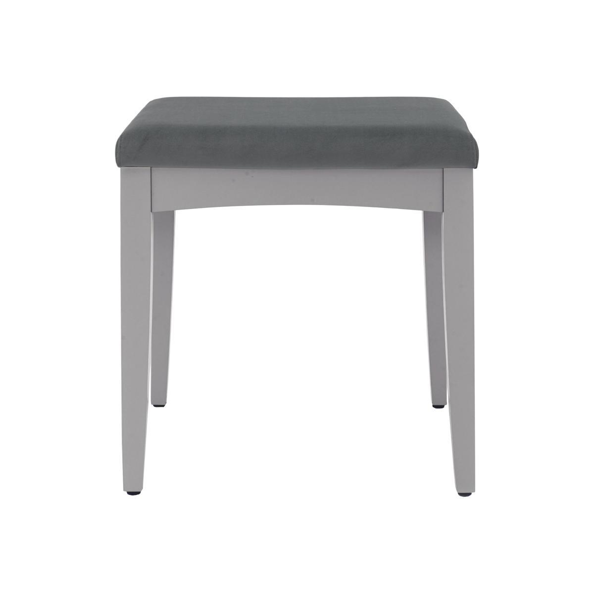 Contemporary elegance inspired by clean-lined Scandinavian design. The carefully curated Cotswold bedroom furniture collection offers a choice of chests of drawers as well as a beautiful bed frame, spacious double wardrobe and charming dressing table, all of which feature the collection’s two-tone natural wood and painted finish. The details are lovely, too, from the turned wooden drawer pulls and gently curved chest tops to the tapered legs and simple grooved detail that completes the look. Beautifully made and perfect for both modern and classic homes. Scandinavian-inspired design with an elegant modern feel. Fashionable painted finish with coordinating seat upholstery. Available in two colours including Furniture Village-exclusive soft grey. The perfect partner for a dressing table, and the perfect finishing touch for a stylish bedroom, the Cotswold dressing table stool is stylish, comfortable and entirely on trend. Clean-lined and contemporary, it features an arched apron, elegant tapered legs and a well-padded overhanging seat cushion that’s upholstered in a high-quality gunmetal grey fabric. The Cotswold dressing table stool is part of the Cotswold bedroom furniture collection, and is designed to pair with the elegant Cotswold dressing table. Complete the look with the collection’s beautiful bed frame and double wardrobe with drawer, and introduce spacious storage by selecting from the range’s wide choice of chests of drawers and bedside tables. Please note. The grain of the wood and other natural markings may be visible through the painted finish.