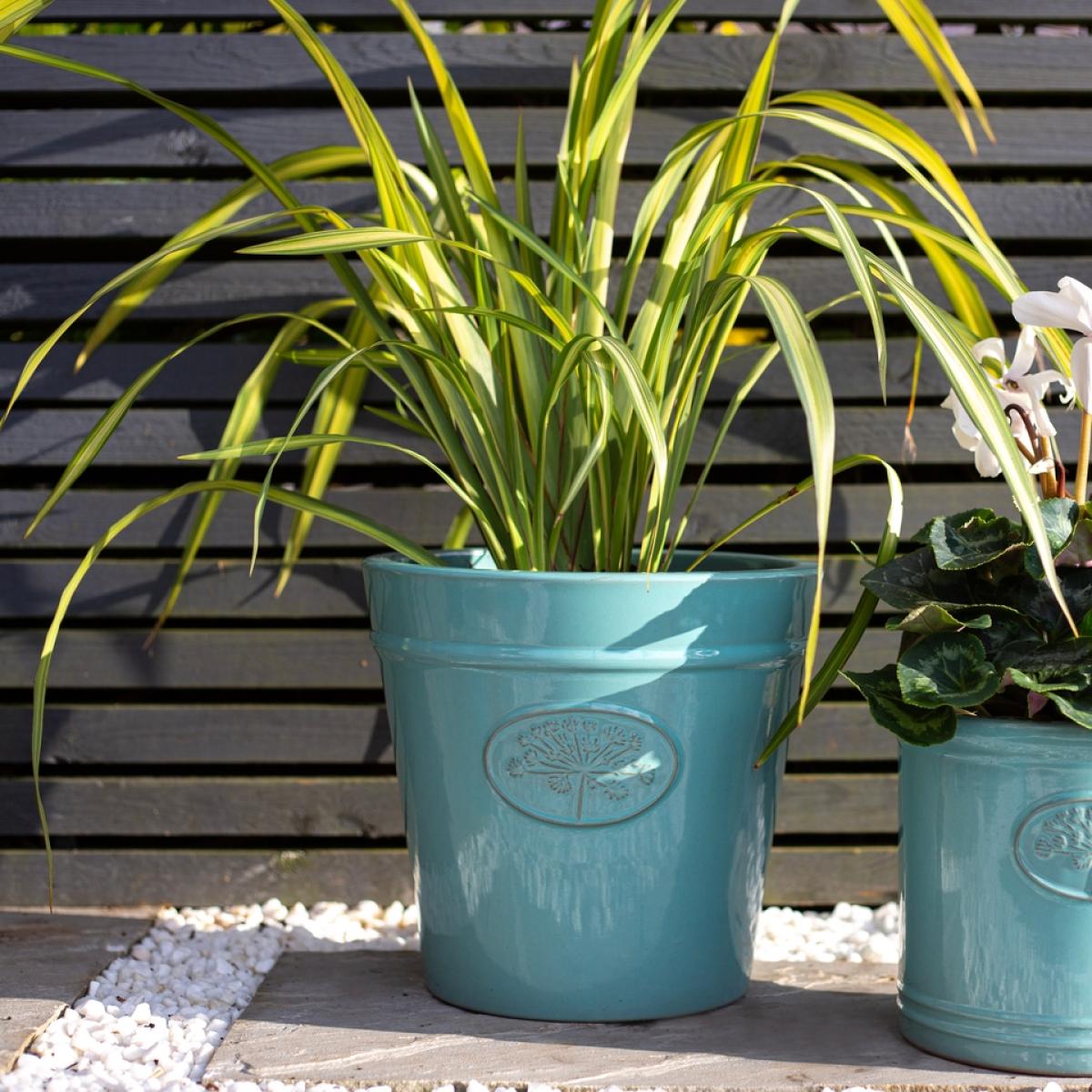 A simplistic yet elegant cone design, this 27cm plant pot features an embossed motif of an Allium in heritage colours. Perfect to combine with other available shapes and sizes within the Cotswold collection.