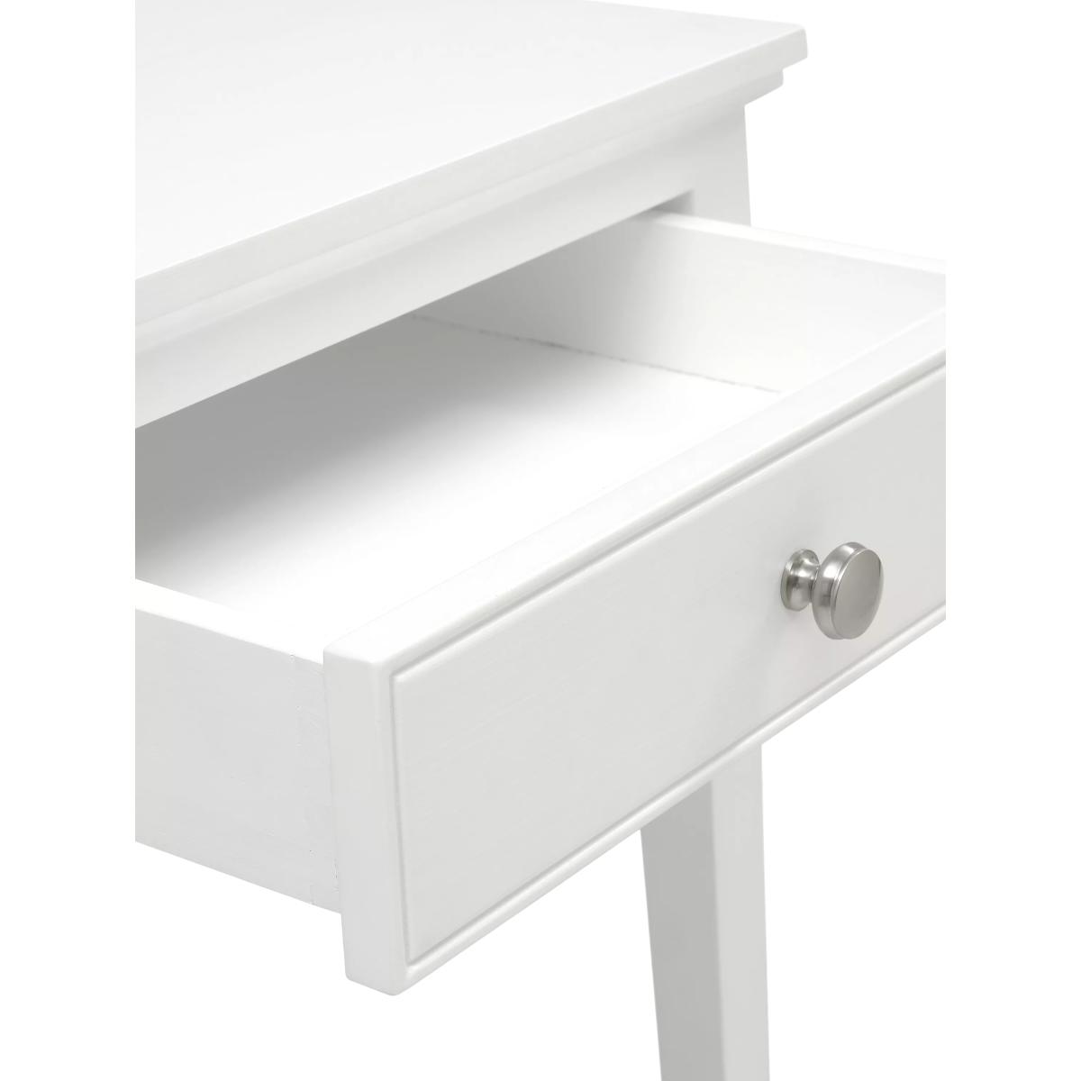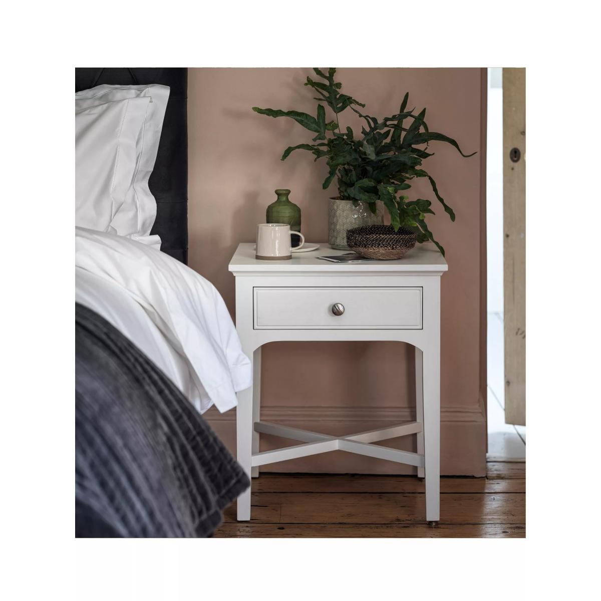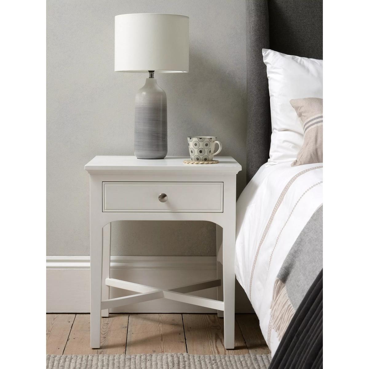 Made from painted poplar wood, the Fairford bedside table is designed with a roomy top surface, smooth edges and a handy soft-close drawer. It's finished with nickel-plated hardware. Want to see it first? You may want to see and get a feel for the furniture in one of our shops before ordering. We'll be able to tell you where the range you'd like to view is on display.