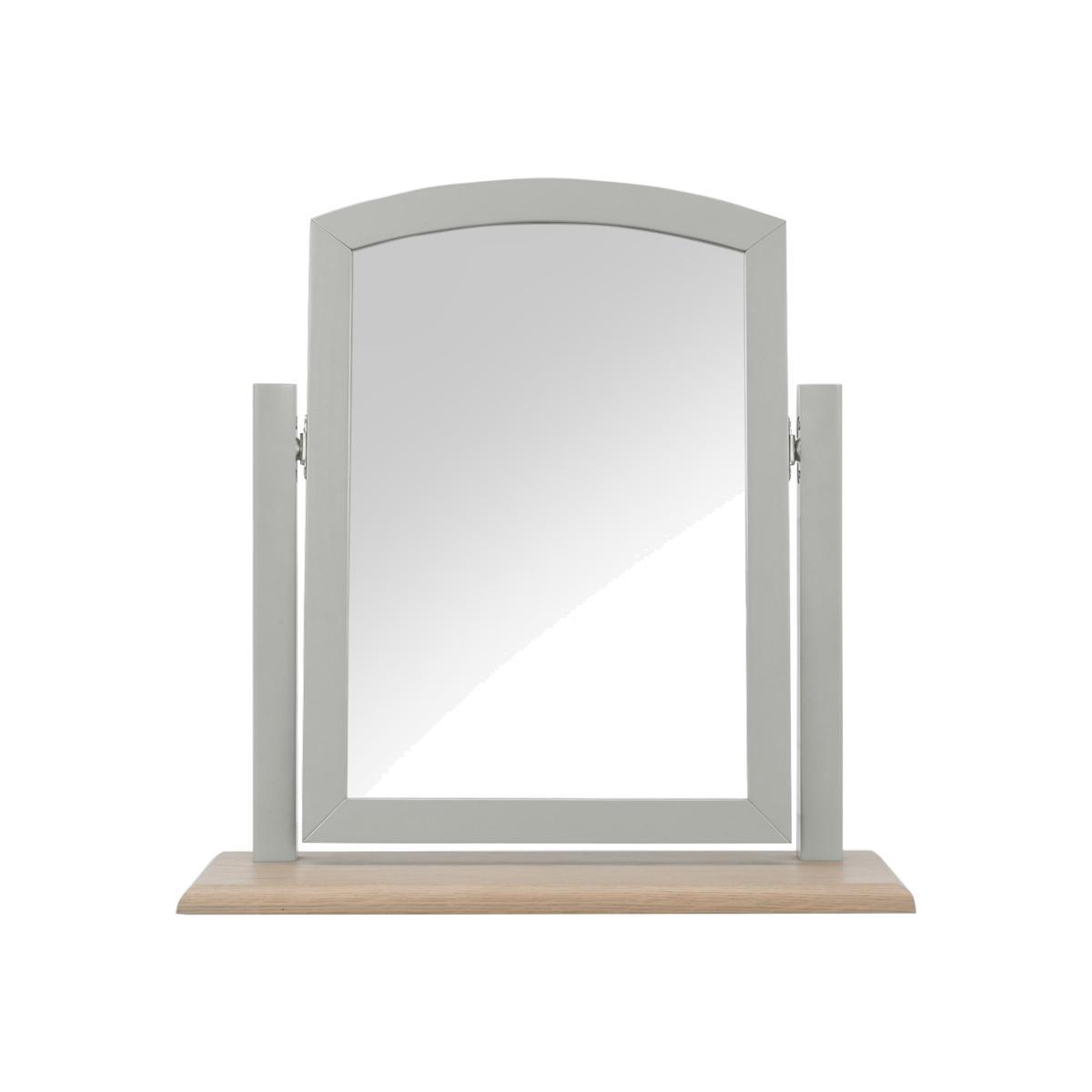 Contemporary elegance inspired by clean-lined Scandinavian design. The carefully curated Cotswold bedroom furniture collection offers a choice of chests of drawers as well as a beautiful bed frame, spacious double wardrobe and charming dressing table, all of which feature the collection’s two-tone natural wood and painted finish. The details are lovely, too, from the turned wooden drawer pulls and gently curved chest tops to the tapered legs and simple grooved detail that completes the look. Beautifully made and perfect for both modern and classic homes. Scandinavian-inspired design with an elegant modern feel. Fine details and a fashionable two-tone wood and painted finish. Available in two colours including Furniture Village-exclusive soft grey. Whether you choose to place the Cotswold vanity mirror on a dressing table or a tall chest of drawers, you’ll certainly appreciate its effortless contemporary style and everyday functionality. Rectangular with an arched top, this mirror pivots within a stylish stand. The mirror frame itself is available in a choice of two grey tones – warm grey, which is a darker grey, and soft grey, a lighter grey that’s exclusive to Furniture Village. The two-tone stand combines natural wood with a grey painted finish. Beautifully crafted with solid beech wood and white oak veneers, the Cotswold vanity mirror is part of the Cotswold bedroom furniture collection. The collection includes a wide choice of chests of drawers as well as a bed frame, a double wardrobe, and bedside cabinets. Looking for the perfect spot for the Cotswold vanity mirror? We suggest the clean-lined and contemporary Cotswold dressing table. Please note. The grain of the wood and other natural markings may be visible through the painted finish.