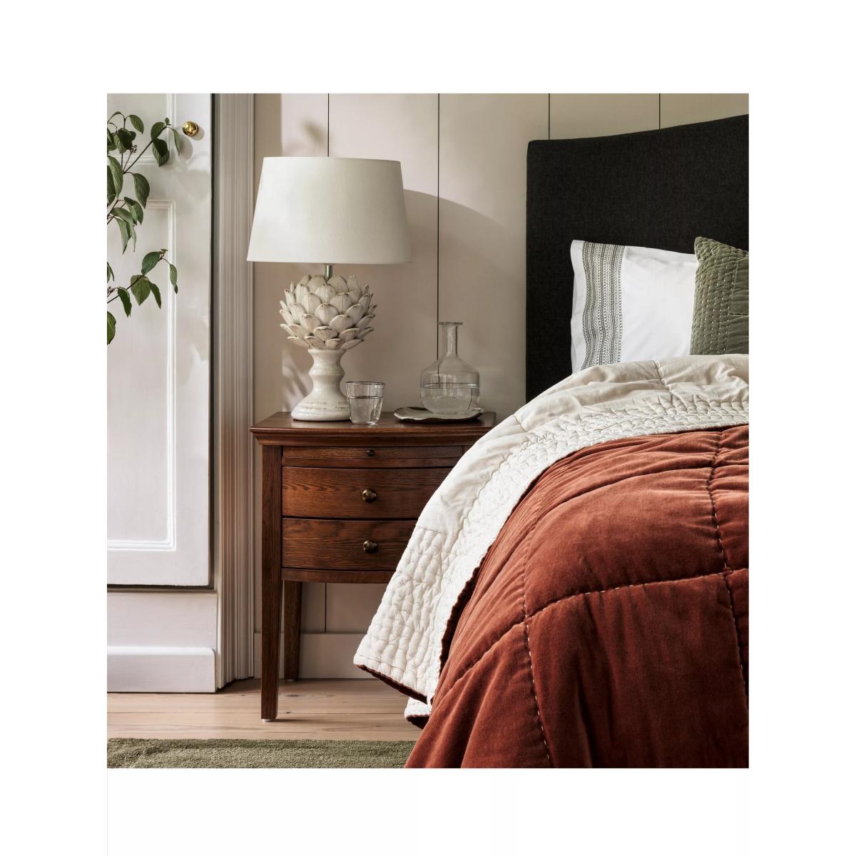 I love this bedside table for its classic dark oak finish, which brings warmth and richness to both traditional and contemporary interiors. It works particularly well in cosy bedrooms with a vintage or rustic aesthetic, but can also add a touch of sophistication to modern spaces when styled thoughtfully. A practical tip is to keep decor minimal on top to highlight the beautiful wood grain, while adding small, contrasting accessories-like brass lamps or soft textiles-for a balanced look. Its two drawers provide useful storage, making it as functional as it is stylish, perfect for keeping essentials close at hand without cluttering your space.