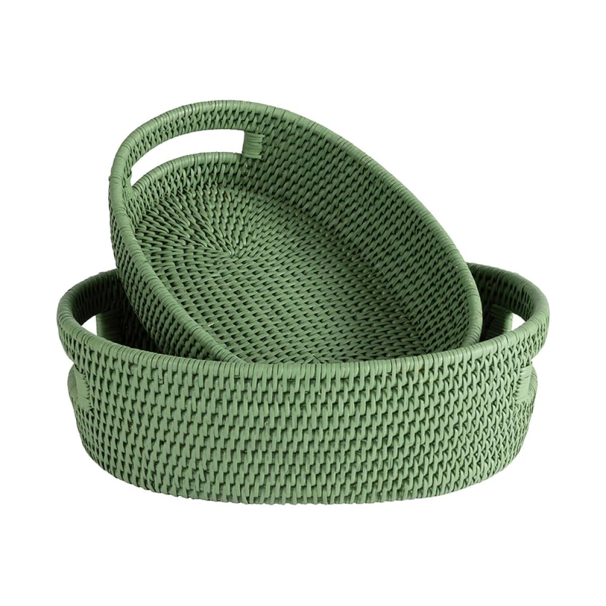 Cotswolds Oval Rattan Basket Green - Set of 2