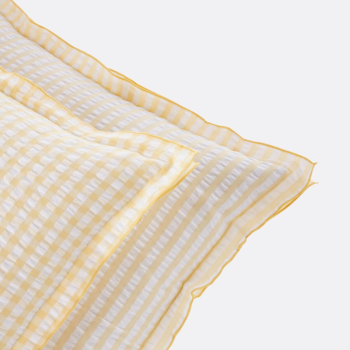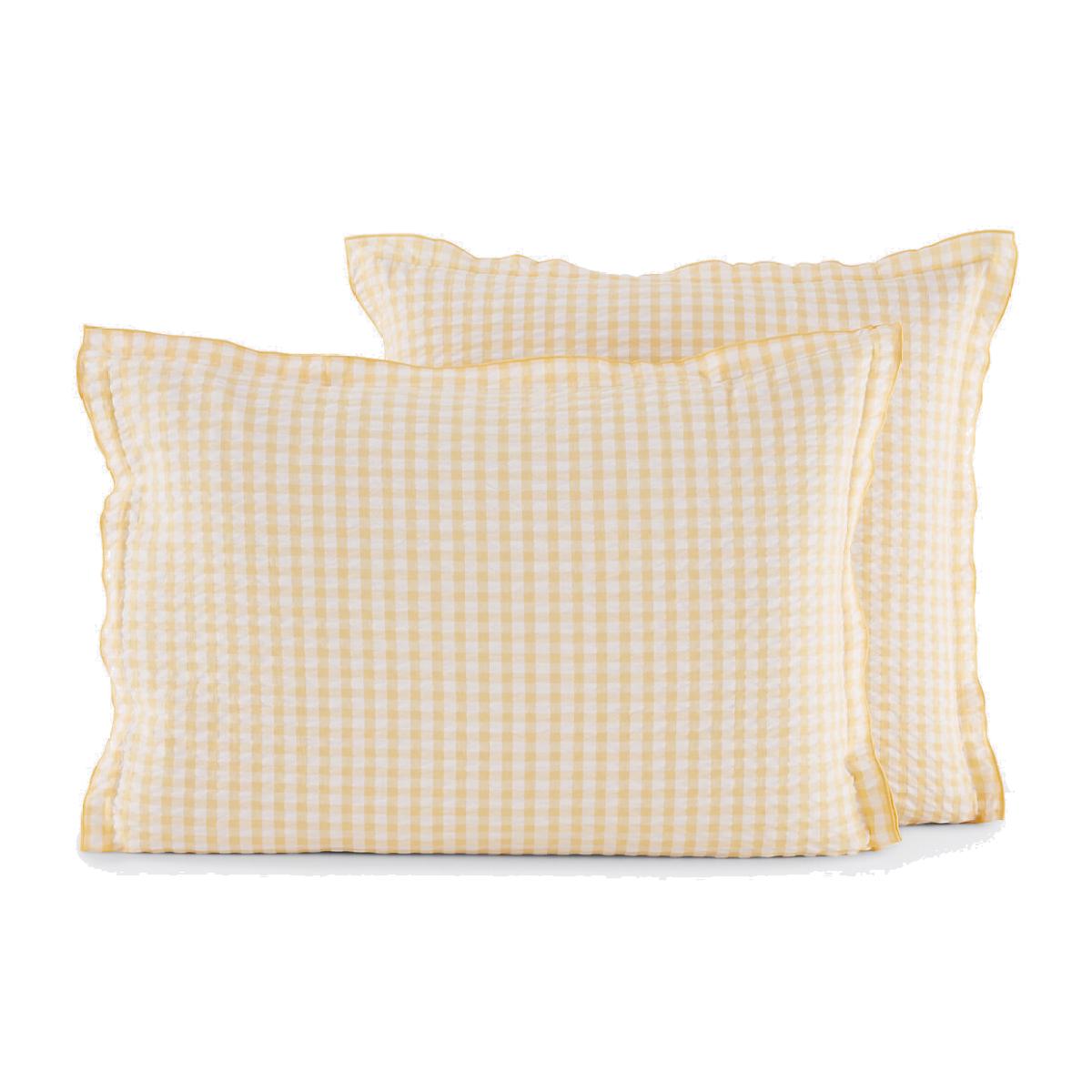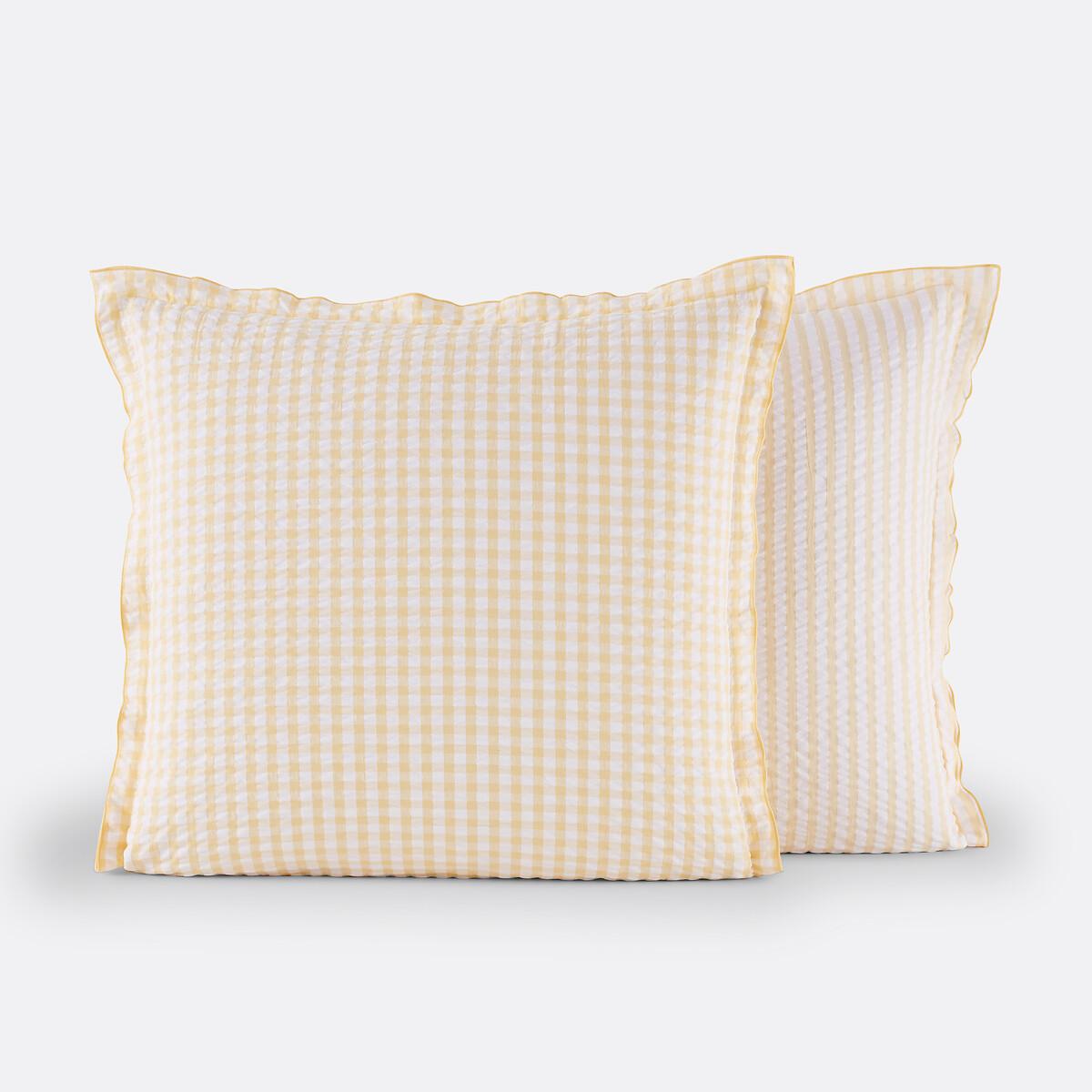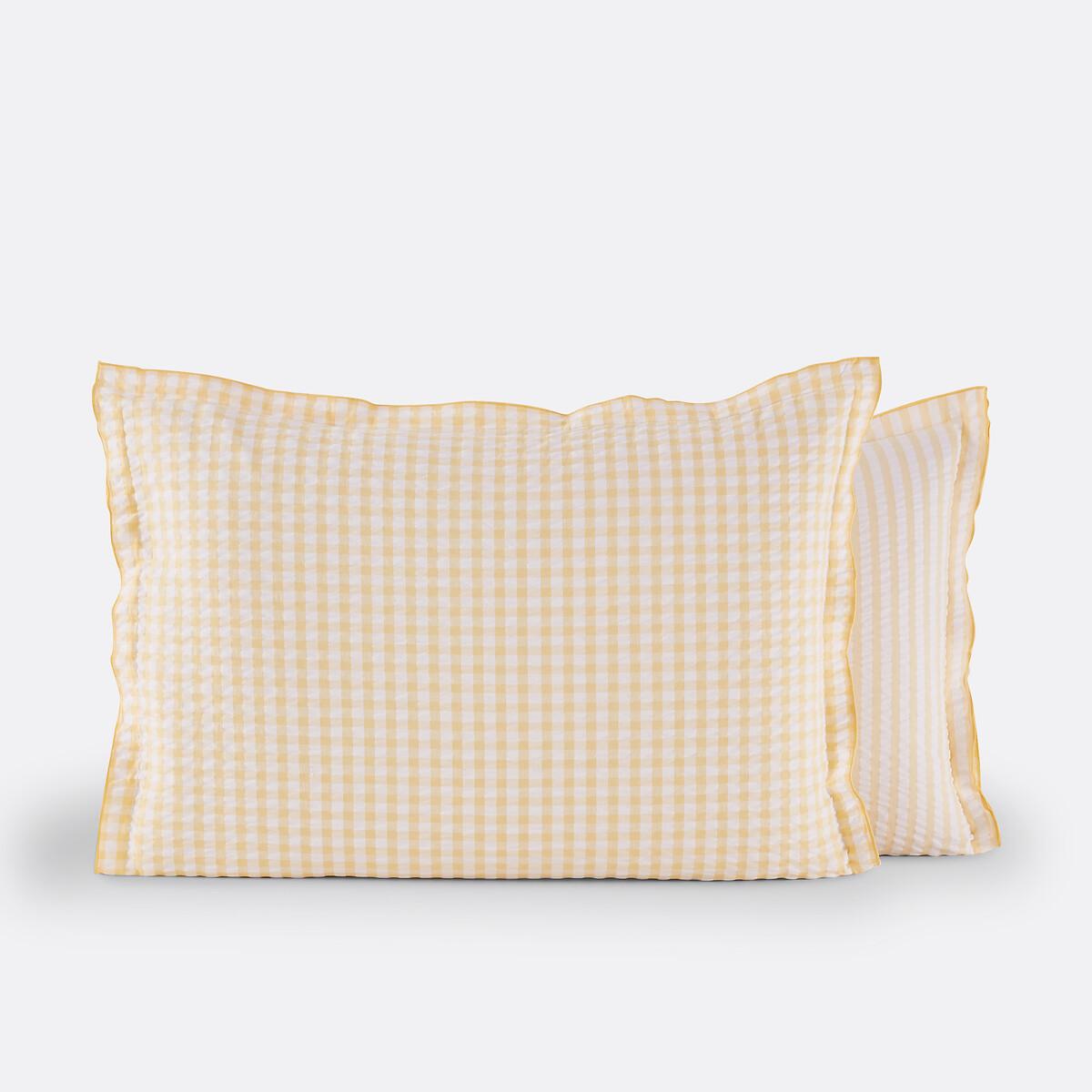 Cottage bed linen is one of our Signatures: exclusive creations, designed by our style gurus. Key pieces from the collection whose line and quality of construction shape the La Redoute Interieurs universe. Always on trend, it's easy to see why Signatures are often customer favourites. Will they be yours. An internal design by Isabelle Olejniczak : “By creating Cottage, I wanted to evoke the warm and rustic world of the English countryside. The embossed appearance of seersucker, gingham on one side and striped on the other, gives it an arstisanal spirit. It is highlighted with a tone-on-tone feature on the double ruffle. "The washed cotton has been delicately bleached during its manufacture. Soft, supple and comfortable, it softens over time. Its slightly wrinkled appearance is incredibly on-trend, and it does not require ironing. Product Details • 100% cotton • Seersucker dyed woven washed cotton • 144 thread count • One side check, one side stripes • Double ruffle finish • Pillowcase sold separately • Colour:Yellow • This item is available in a range of colours. As the seasons change, add your own personal touch by mixing the Cottage yellow range with our Scenario plain range.. Care Advice • Machine washable at 60°C • By washing your laundry at 40°C instead of 60°C, you limit energy consumption. Dimensions • 50 x 70cm: Rectangular pillowcase • 63 x 63cm: Square pillowcase • OEKO-TEX® Standard 100. Standard 100 certification by OEKO-TEX® tests textile products for harmful substances via an independent, international label.