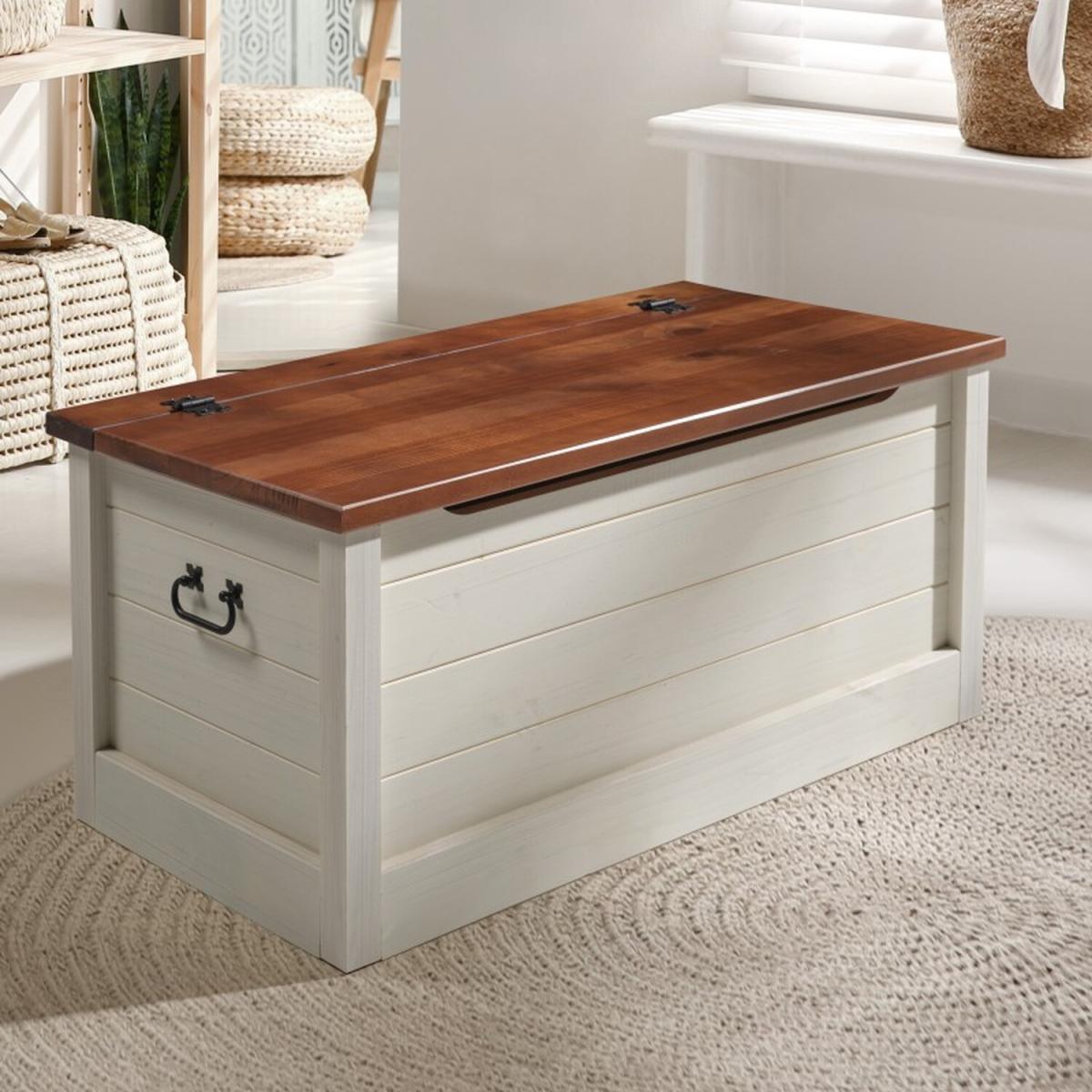 Elevate your homes storage with the timeless charm of the Cottage Black Blanket Box. Crafted from solid pine wood, this beautifully designed piece blends rustic character with modern utility. The deep black painted body contrasts elegantly with the rich, warm pine top, creating a cosy cottage aesthetic that suits both traditional and contemporary interiors. Ideal for storing blankets, pillows, toys, or seasonal items, the spacious interior is easily accessible via a hinged lid. Sturdy side handles offer convenient portability, while the panelled front and sides add visual interest and handcrafted appeal. Whether at the foot of your bed, under a window, or beside the sofa, the Cottage Black Blanket Box delivers stylish storage with timeless appeal. Supplied flat packed for easy home assembly. Height - 45cm Width - 90cm Depth - 48cm Elevate your homes storage with the timeless charm of the Cottage White Blanket Box. Crafted from solid pine wood, this beautifully designed piece blends rustic character with modern utility. The white painted body contrasts elegantly with the rich, warm pine top, creating a cosy cottage aesthetic that suits both traditional and contemporary interiors. Ideal for storing blankets, pillows, toys, or seasonal items, the spacious interior is easily accessible via a hinged lid. Sturdy side handles offer convenient portability, while the panelled front and sides add visual interest and handcrafted appeal. Whether at the foot of your bed, under a window, or beside the sofa, the Cottage White Blanket Box delivers stylish storage with timeless appeal. Supplied flat packed for easy home assembly. Height - 45cm Width - 90cm Depth - 48cm