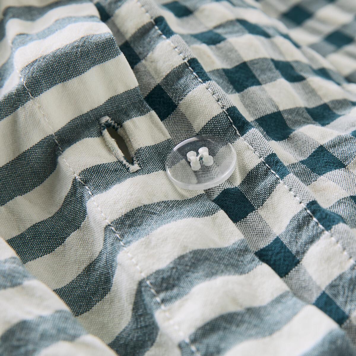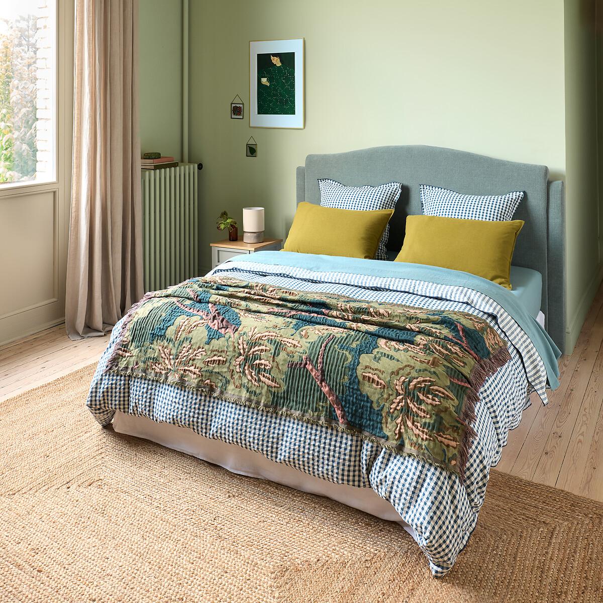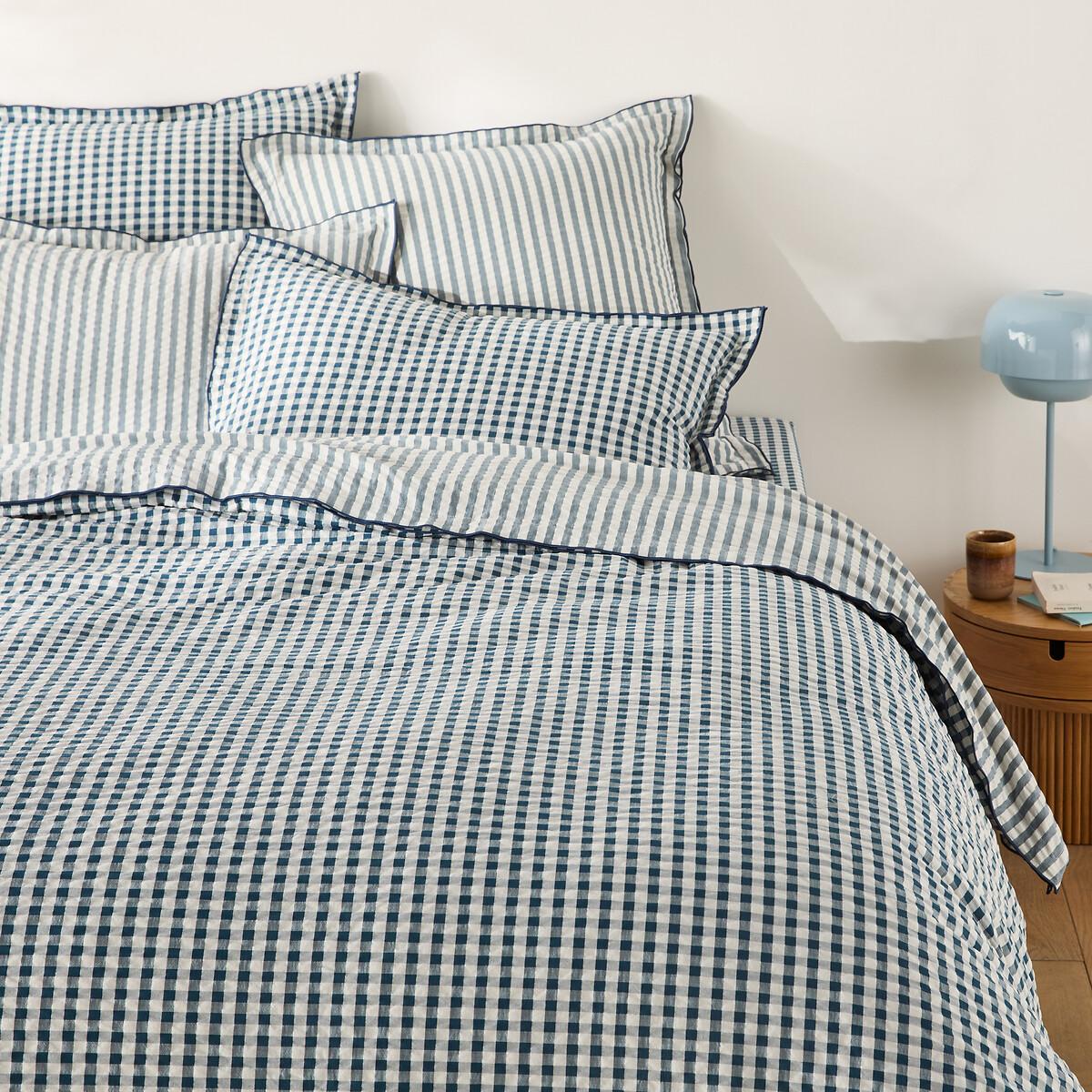 The Cottage duvet cover is one of the Signatures of La Redoute Intérieurs. A selection of exclusive creations, designed by our in-house design studio. Inspiring, easy to live with, trendy... these products have become our customers' favourites. and no doubt yours!.In lightly embossed washed cotton using the seersucker technique, the Cottage bed linen set plays on the contrasts between gingham checks and fine stripes. It evokes a timeless art of living, a blend of authentic charm and understated elegance. An internal design by Isabelle Olejniczak : “By creating Cottage, I wanted to evoke the warm and rustic world of the English countryside. The embossed appearance of seersucker, gingham on one side and striped on the other, gives it an arstisanal spirit. It is highlighted with a tone-on-tone feature on the double ruffle. "The washed cotton has been delicately bleached during its manufacture. Soft, supple and comfortable, it softens over time. Its slightly wrinkled appearance is incredibly on-trend, and it does not require ironing. Product Details • 100% cotton • 144 thread count • Seersucker dyed woven washed cotton • Gingham checked on front, stripes on back • Blue option • Available in other colours • Double ruffle finish • Straight buttoned hem. As the seasons change, add your own personal touch by mixing the Cottage blue range with our Scenario plain range. Care Advice • Machine washable at 60°C • By washing your laundry at 40°C instead of 60°C, you limit energy consumption. Dimensions • 140 x 200cm: Single • 200 x 200cm: Double • 240 x 220cm: King • 260 x 240cm: King. Pillowcases sold separately. • OEKO-TEX® Standard 100. Standard 100 certification by OEKO-TEX® tests textile products for harmful substances via an independent, international label.