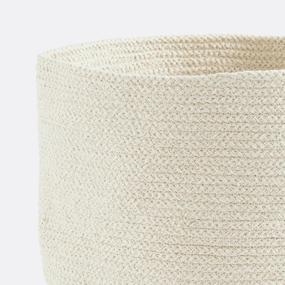 The cotton basket is a versatile piece that works well in a variety of interiors, from Scandi minimalism to coastal or country styles. I love its natural, neutral tone, which makes it easy to incorporate into different colour schemes. It’s perfect for hiding away clutter like throws, magazines, or children's toys, while still looking stylish. For practical styling, try pairing it with other natural textures such as wooden or rattan accents to enhance its organic feel, or use it as a standalone feature on a shelf or corner. Its substantial size (Ø35cm) means it can handle larger items, making it both functional and a subtle design element.