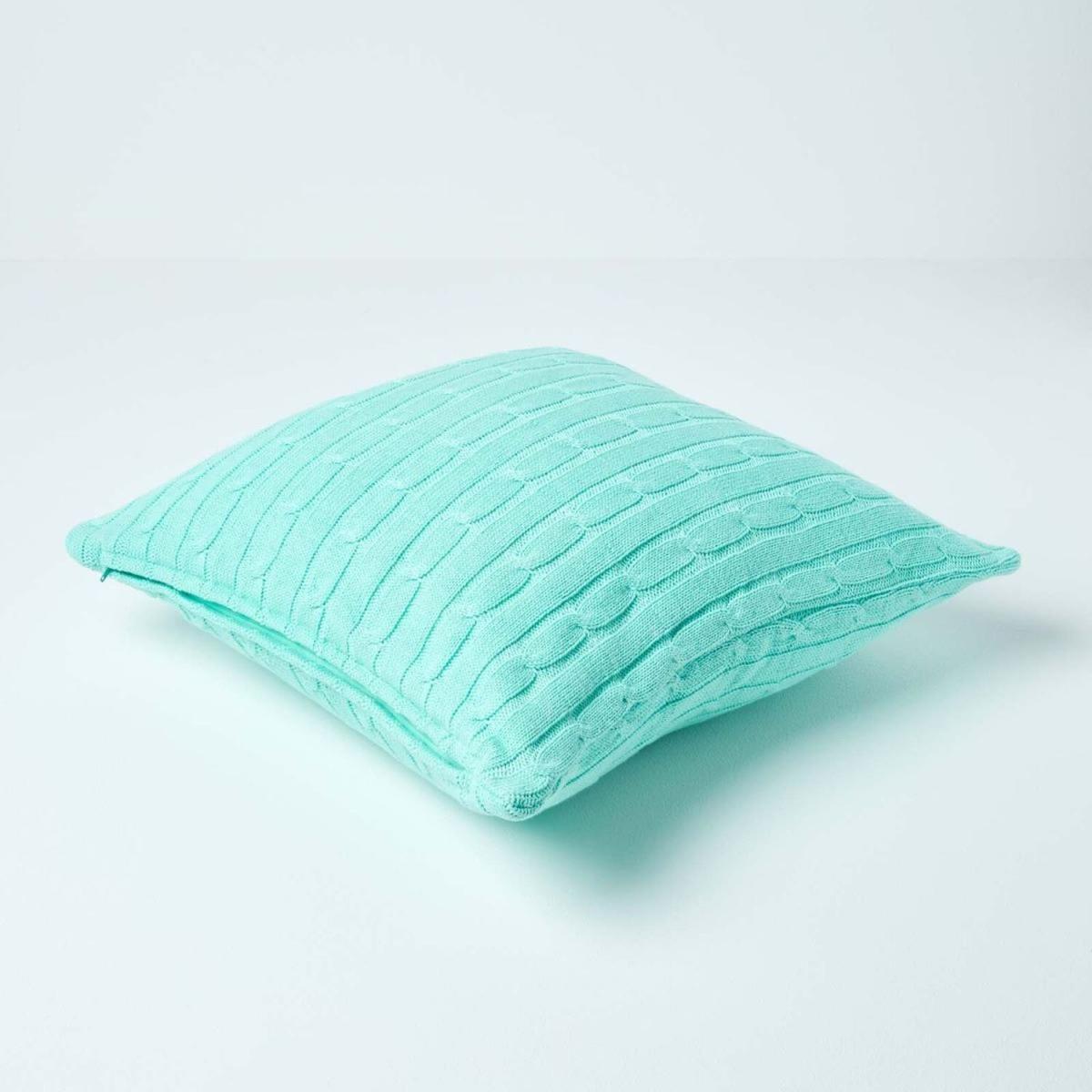 Cotton cable knit Cushion Covers and Throws from Homescapes are manufactured using finely combed cotton yarn. This means that the impurities in the fibre have been completely filtered out leaving long soft cotton fibre which makes them ever so nice to use. The design is classic cable which looks contemporary and stylish all the time. They have been assembled very carefully and is made to last, it washes very well and comes out great after every wash. A hot favourite of many international designers and brands, this throw will look gorgeous on your sofa or your bed and equally great to snuggle under. Homescapes have introduced this Cushion cover and throw in three classic colours, natural, duck egg blue and chocolate brown in two sizes. The price is very reasonable as exactly the same throw can be found online or in store at thrice the price with designer brands. Homescapes can keep the price in check as they are manufacturers and are simply delivering their promise of bringing Department Store Quality Direct from Manufacturers.