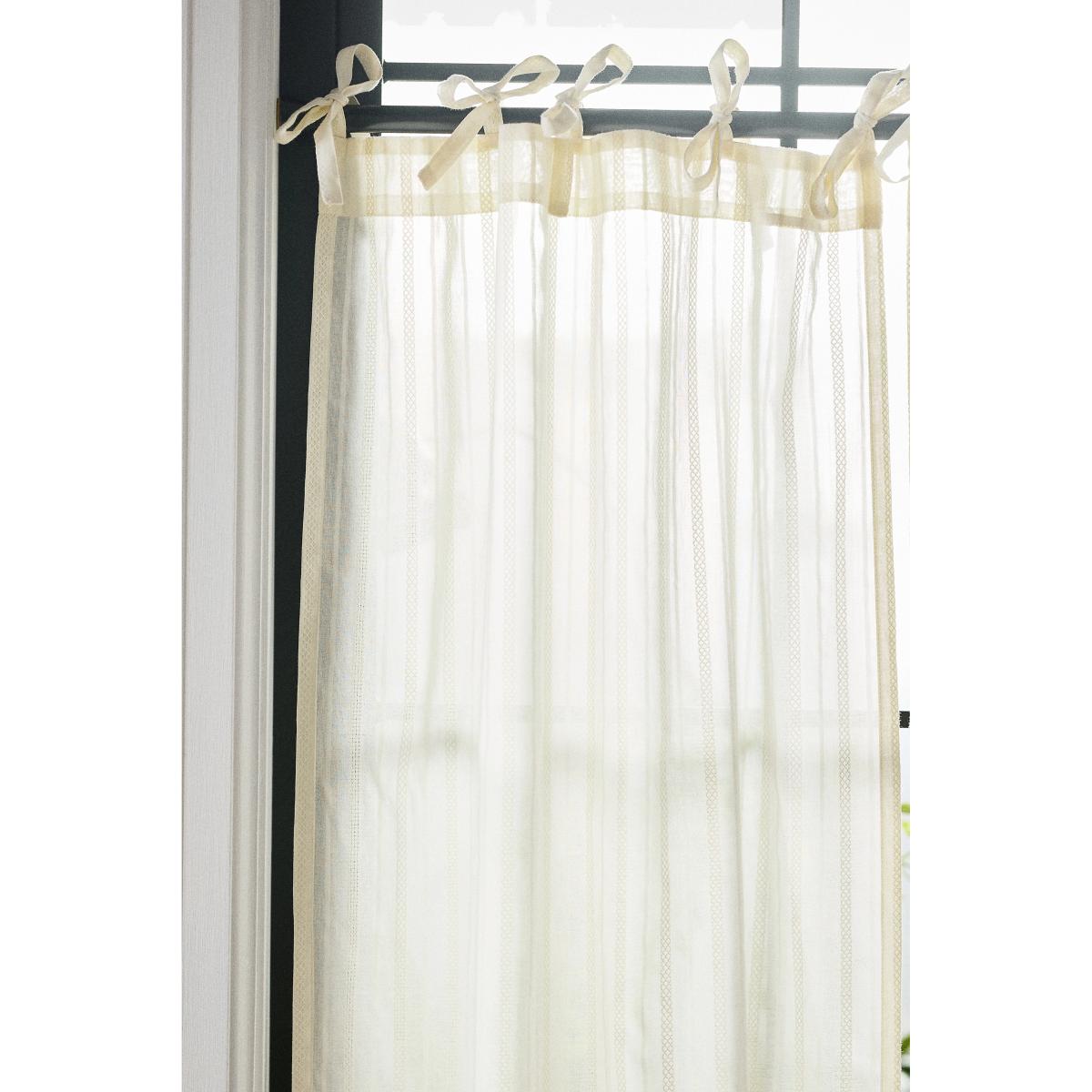 Featuring whimsical ties, these café curtains bring the perfect amount of light and style to any space. * Set of two * 100% Cotton * This style is sheer * Unlined * Machine wash cold * Imported