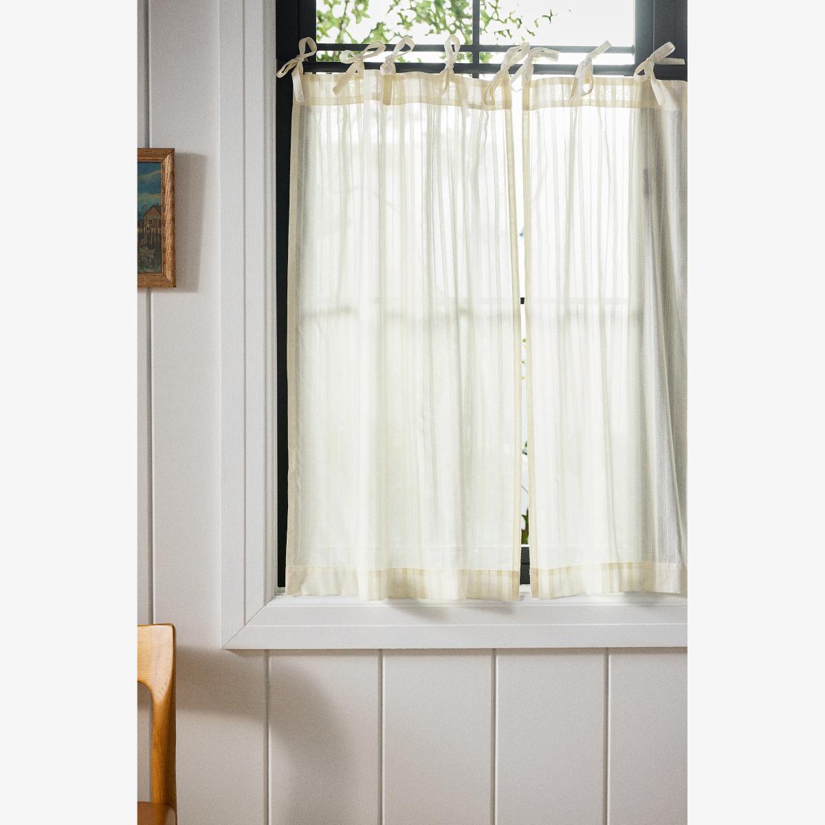 Cotton Dobby Striped Sheer Tie-Top Café Curtains, Set of 2