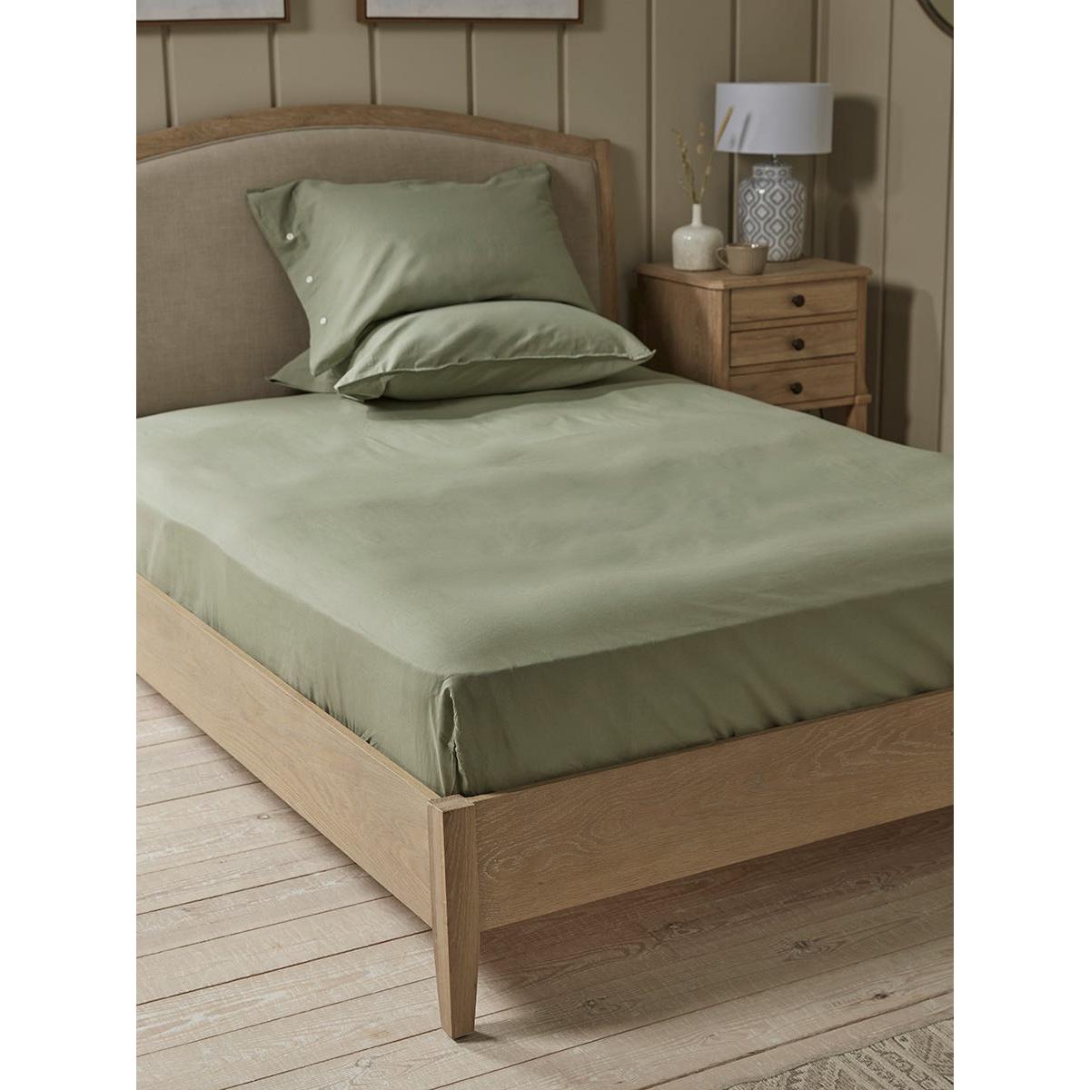 Cotton Double Fitted Sheet- Eucalyptus