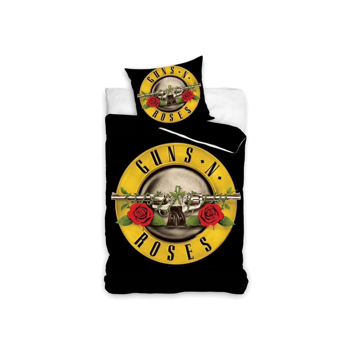 This amazing Guns N Roses single duvet cover is the ideal bedding set for any fans of the legendary L.A rock band. The design features the iconic Guns N roses band logo set in the centre of a black background on the duvet cover and large European size pillowcase. This zip-closing bedding set is made from 100 cotton and can be machine washed and tumble dried on a cool setting.