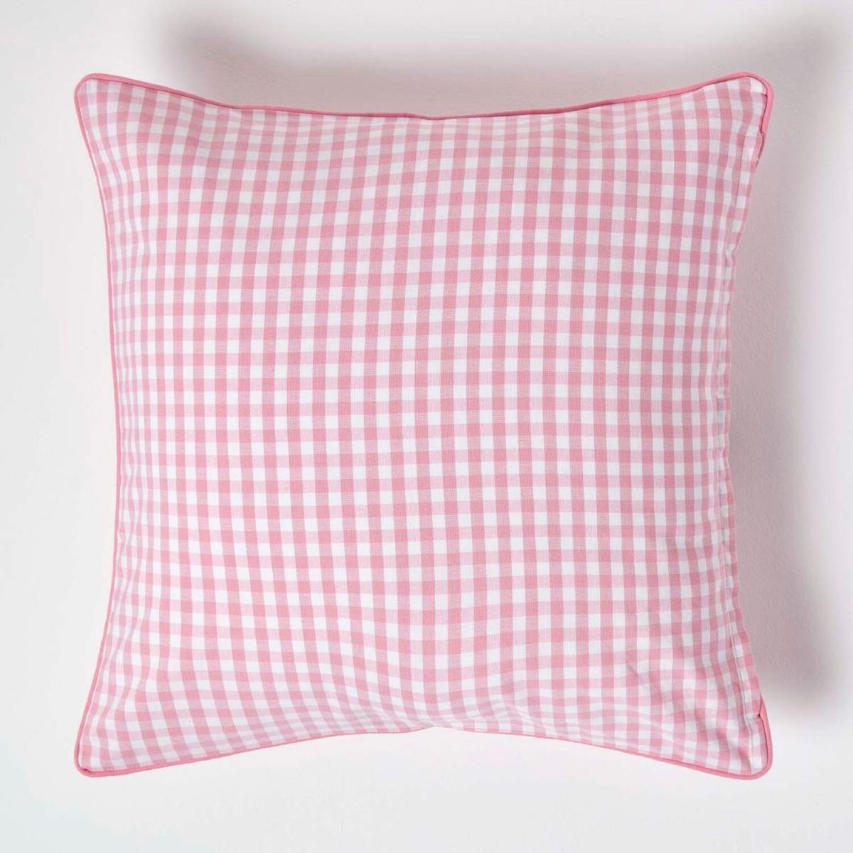 Cotton Gingham Check Cushion Cover - Pink / 60cm