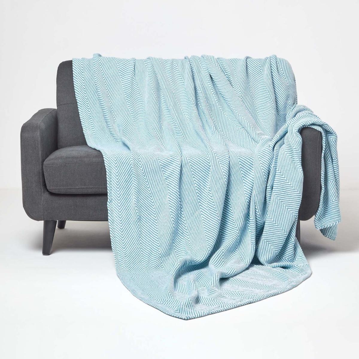 This bright throw from Homescapes comes in a gorgeous teal colour to add a pop of colour and texture to your home interiors. The Halden throw features a chevron design so it compliments contemporary style homes perfectly. A geometric style pattern that will introduce an on-trend boho style into any room. Drape it over your sofa to give your home dcor a bright and colourful update, or pair it with grey bed linen to achieve some Scandi style in your bedroom. Perfect for teen bedrooms and University hall rooms, this throw will add an extra layer of warmth to your bed, whilst also adding some modern style and design. Woven from 100 cotton, this throw feels soft to the touch and is made from a durable and strong fabric.