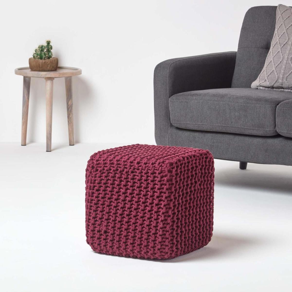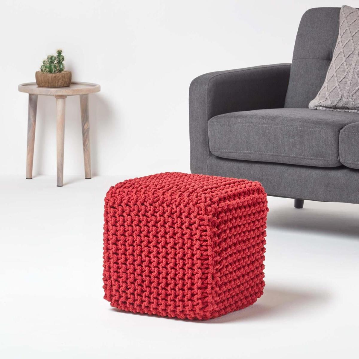 Homescapes has by far the largest range of knitted pouffe and cubes in the UK and possibly in Europe. A selection of 10 colours and two different shapes allows you a vast choice not available anywhere. These knitted pouffe and knitted cubes have been hand knitted in 100 cotton and filled with compressed polystyrene. They are very colourful and fashionable. These are used for occasional seating, footstool or even as an end table. They would look equally at home in a Nordic setting along with the rest of your warm soft furnishings, or in a sleek modern setting providing a splash of colours. You could have a combination of colours and shapes in your living room or any other room to inject a quick life or freshness. Their simplicity and colours make them modern, and the hand knitted ruggedness also make them most suitable to traditional settings. Some interior decorators have coordinated Homescapes hard wood coffee table with these colourful pouffes and cubes to bring out an eclectic interior settings. At the most affordable and unbeatable price it's a great addition to have in your home.