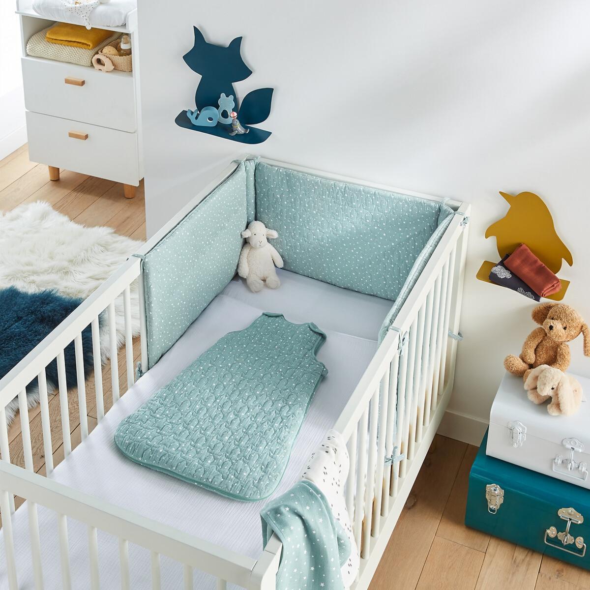 This star print cot bumper consists of 3 panels to attach to the cot by ties. This cot bumper adapts to fit 60 x 120cm and 70 x 140cm cots.