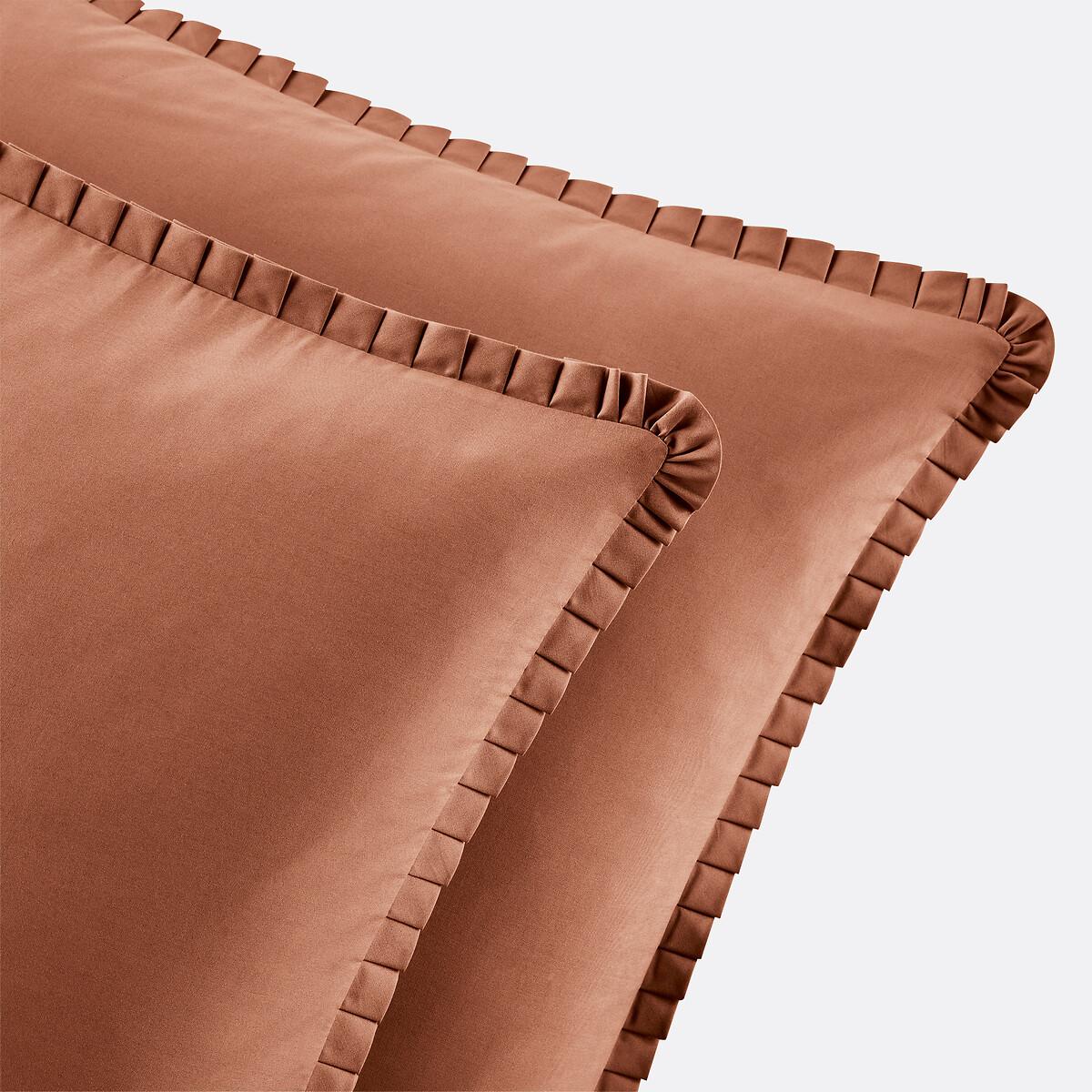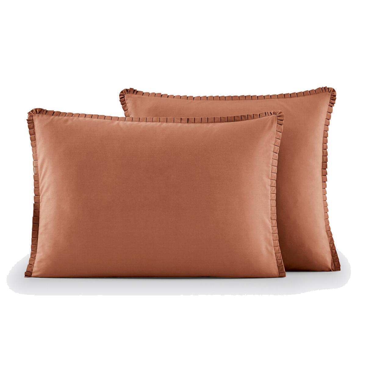 A pillowcase in cotton percale. A new flat pleated trim finish. The cotton percale offers a pleasant feeling of freshness and lightness. Its tight weave makes it particularly soft for premium comfort. A matte and smooth material that will soften over time. A superb range in on-trend colours. Product Details • 100% cotton • Percale • 200 thread count: The higher the thread count, the higher the quality of the weave • Flat ruffle trim • Easy care treatment: makes ironing easier. Care Advice • Machine washable at 60°C • By washing your laundry at 40°C instead of 60°C, you limit energy consumption. Dimensions • 50 x 70cm: Rectangular pillowcase • 63 x 63cm: Square pillowcase • OEKO-TEX® Standard 100. Standard 100 certification by OEKO-TEX® tests textile products for harmful substances via an independent, international label.