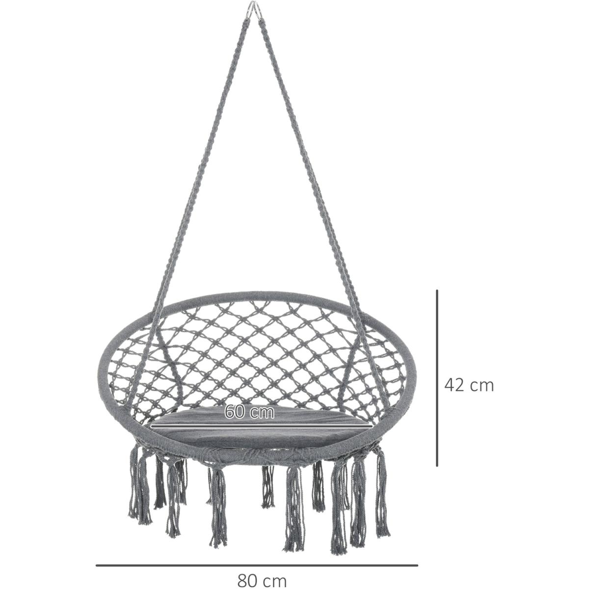 Cotton-Polyester Blend Macrame Swing Hammock - Grey