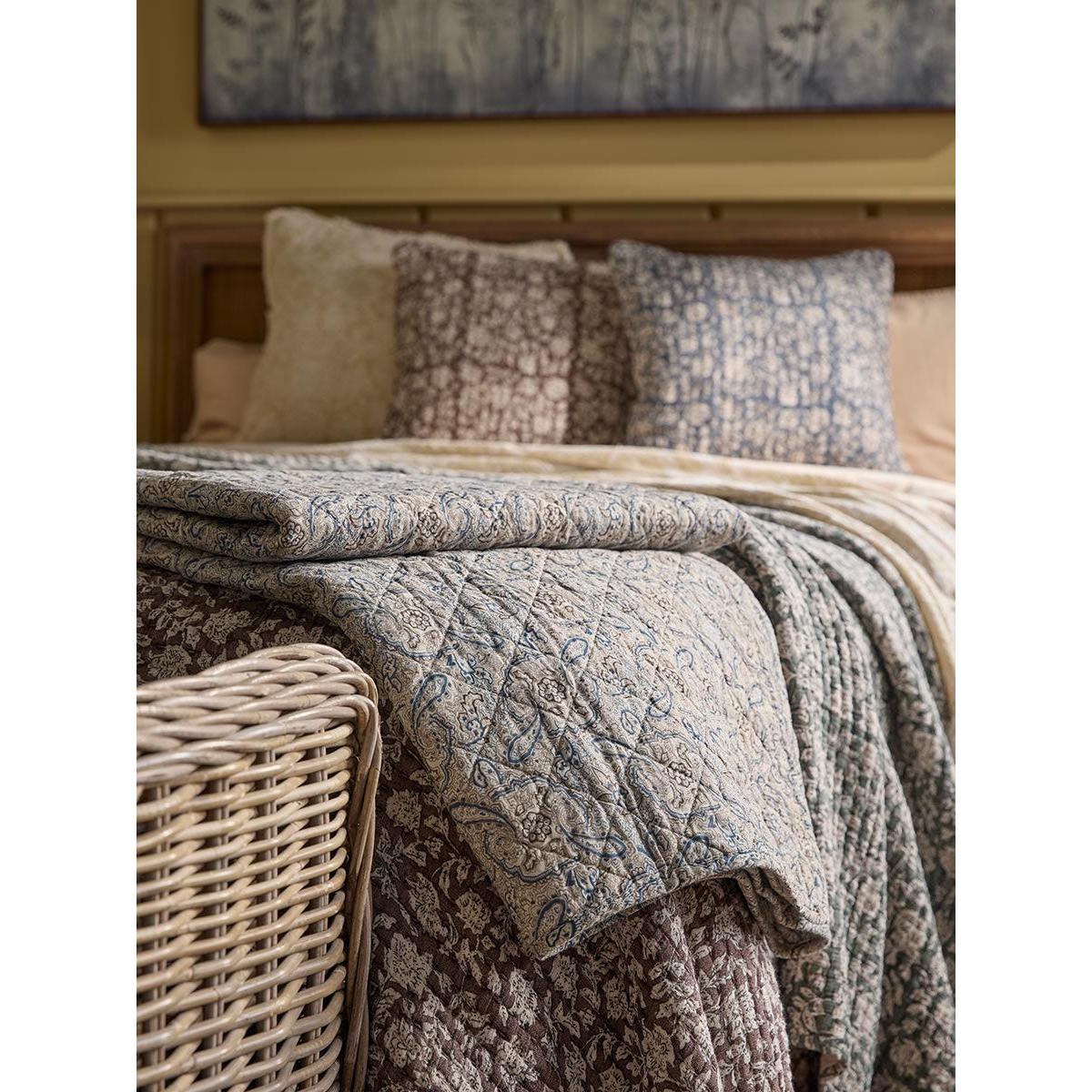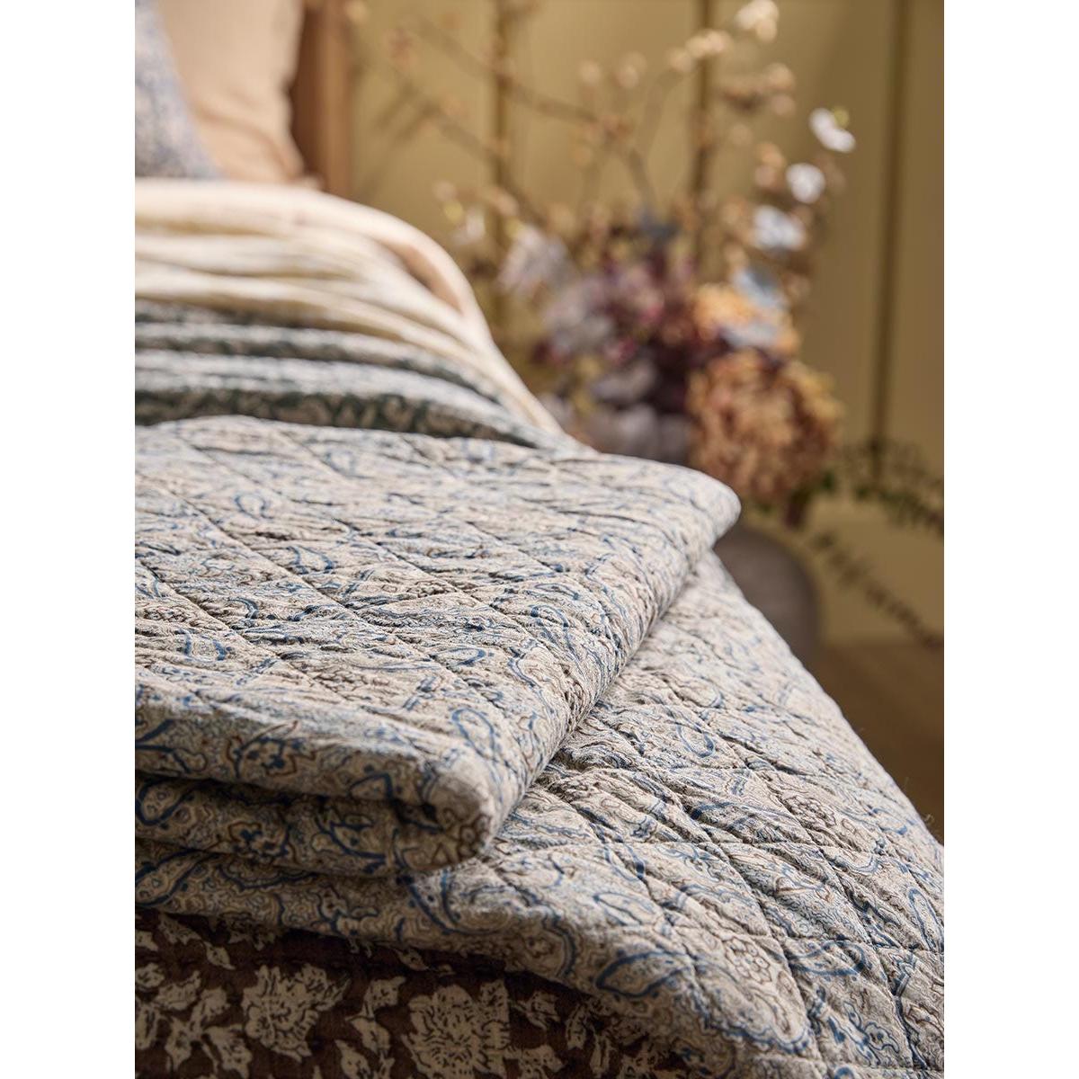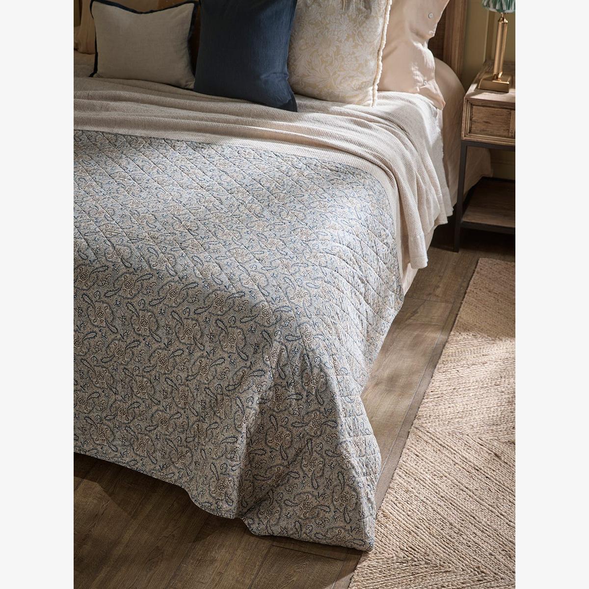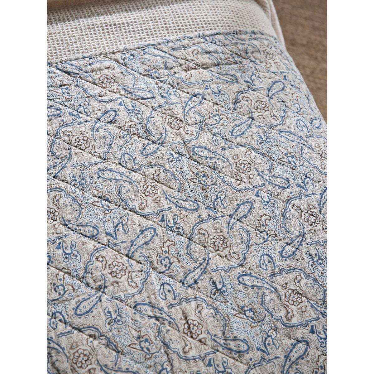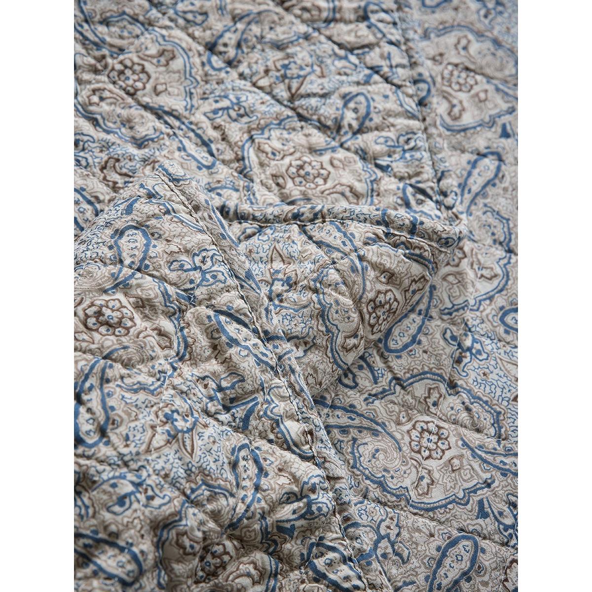 With a delicate paisley print, this cotton quilted throw adds comfort and warmth to your bed during the seasonal changes. Tones of blue pop against the natural tones of the design, creating an individual and eclectic pattern that works wonderfully in our English Rustic trend.