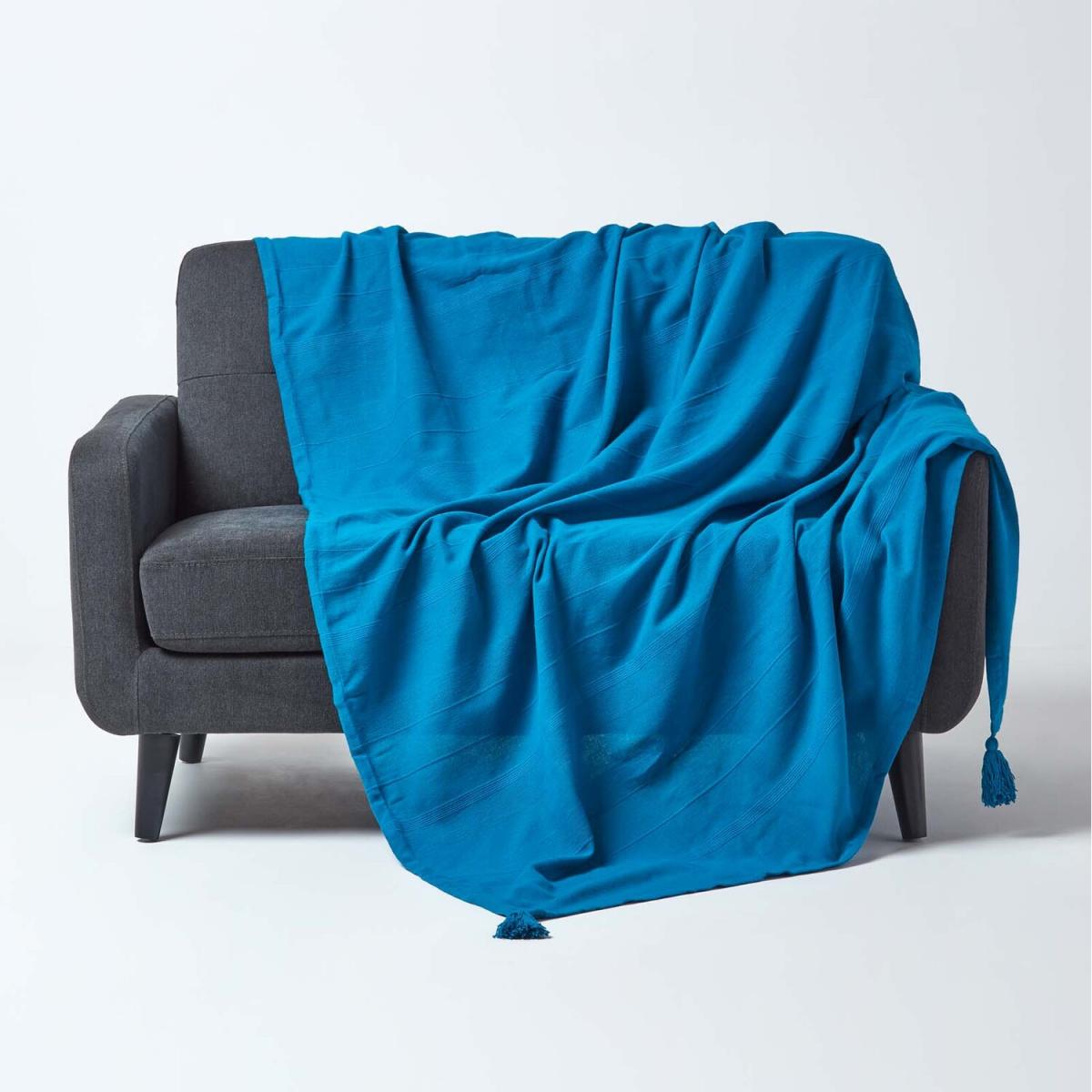 Colourful bedspreads and sofa throws from Homescapes transform your sofa or bed into a true eye-catcher. Would you like to add a splash of colour to your interiors? Then Homescapes has just the right thing for you! All throws from the product range "Rajput" are manufactured by hand on traditional looms in India. Thus, each blanket is unique! The proceeds from the sales go directly to the weavers and their families, enabling a significant improvement of their living conditions. To complement the bedspreads and throw, Homescapes also offers eyelet curtain pairs, cushion covers and floor cushions in 8 beautiful colours (blue, beige, yellow, purple, teal, chocolate, natural and black). So, you can decorate your bedroom or living room according to your preference and liking.