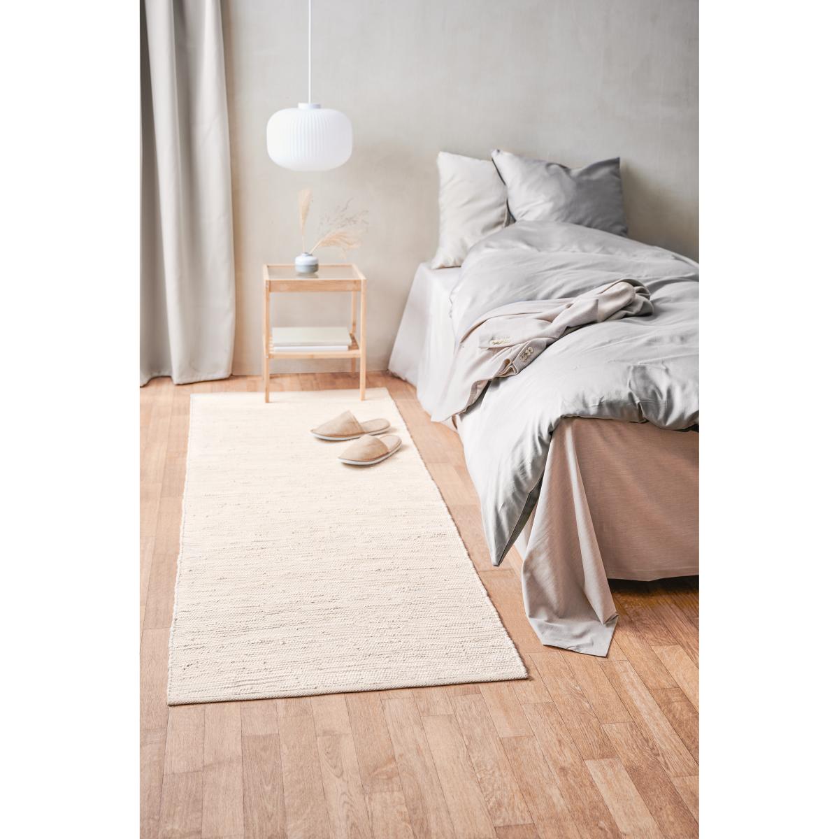 From Rug Solid Denmark comes a beautiful, minimalistically designed rug made entirely of recycled materials. The cotton that is used in making the Cotton rug 65x135 comes from leftover cotton from the fashion industry, where cotton strips are carefully selected, cut, and woven by hand. This process creates a particularly dense and smooth weave that feels wonderful to walk on. Thanks to the relaxed style, this rug fits in easily in most furnishing styles and contributes to the overall design impression without attracting too much attention.