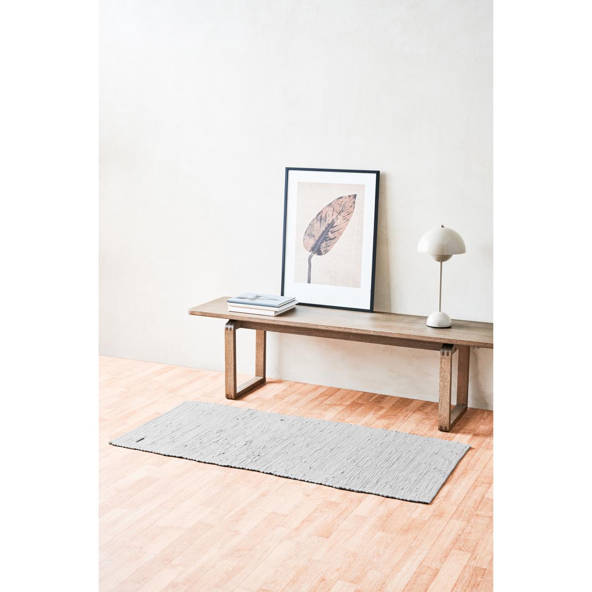 From Rug Solid Denmark comes a beautiful, minimalistically designed rug made entirely of recycled materials. The cotton that is used in making the Cotton rug 65x135 comes from leftover cotton from the fashion industry, where cotton strips are carefully selected, cut, and woven by hand. This process creates a particularly dense and smooth weave that feels wonderful to walk on. Thanks to the relaxed style, this rug fits in easily in most furnishing styles and contributes to the overall design impression without attracting too much attention.