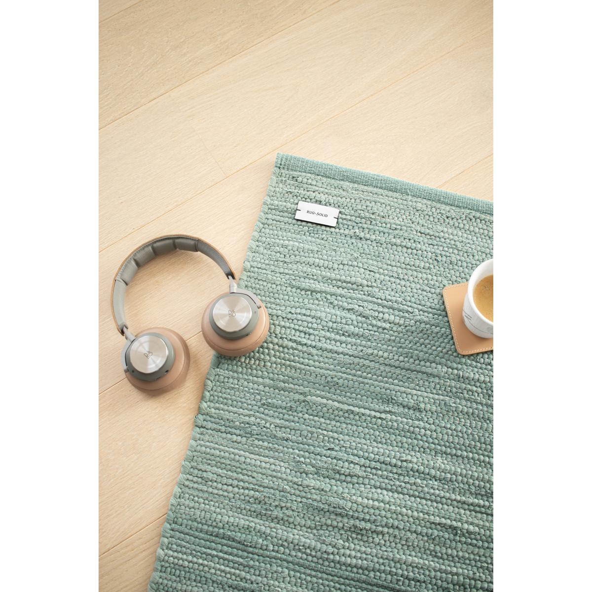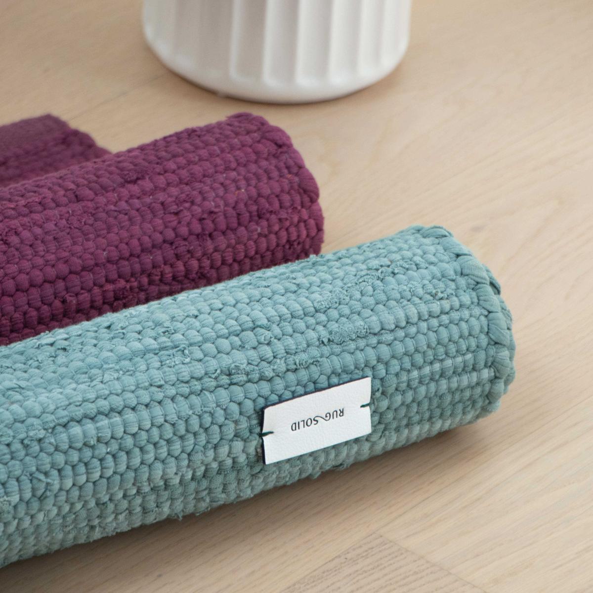 A minimalist designer cotton rug from the Danish brand Rug Solid. The design company is well-known for using specialized materials for their rugs and carpets, taking components and textiles used in the fashion industry to create innovative interior details. Cotton strips are carefully selected and assembled to ensure a premium end-product. The strands are then woven together by hand utilizing a technique that produces a very dense yet fine weave. The rug has also been crafted from recycled materials to produce a final piece that is not only gorgeous but environmentally friendly and highly durable. The subdued and refined design of the carpet creates a distinguished style that doesn't call too much attention to itself but instead bolsters the natural decor of the room.