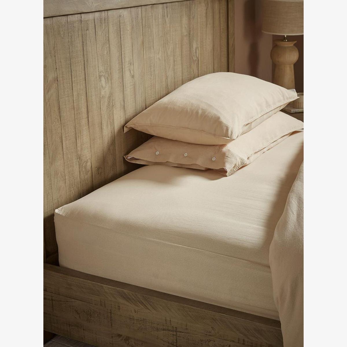 Luxuriously soft and welcoming, our super king fitted sheet makes getting into bed even cosier than it already was. In a soft flax colour, this fitted sheet adds warmth to your bed, perfect for creating a calming and tranquil bedroom.