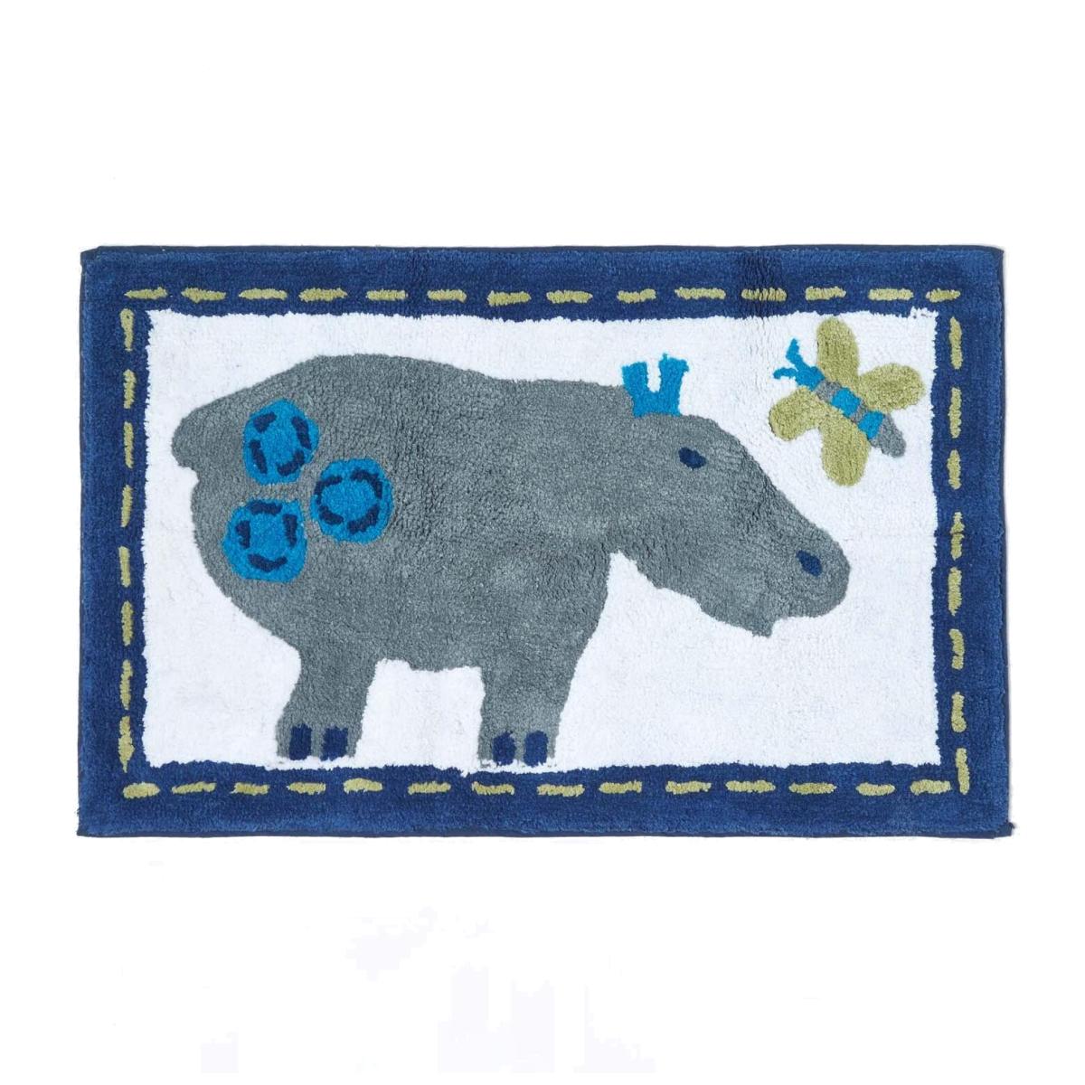 This grey, blue and white children's rug is a hand tufted, 100 cotton mat with a hippo and butterfly design. The simple and minimalistic style is in keeping with Homescapes range of kid's animal rugs, and offers a fun, soft and clean surface for children to play on. These decorative rugs are machine washable at home, and are also suitable to be used in your bathroom.