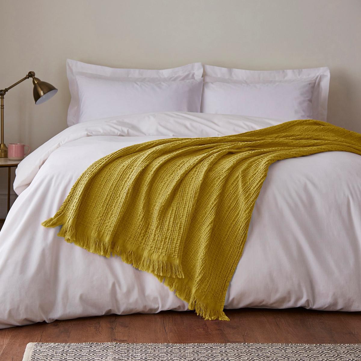 Cotton Waffle Throw Yellow