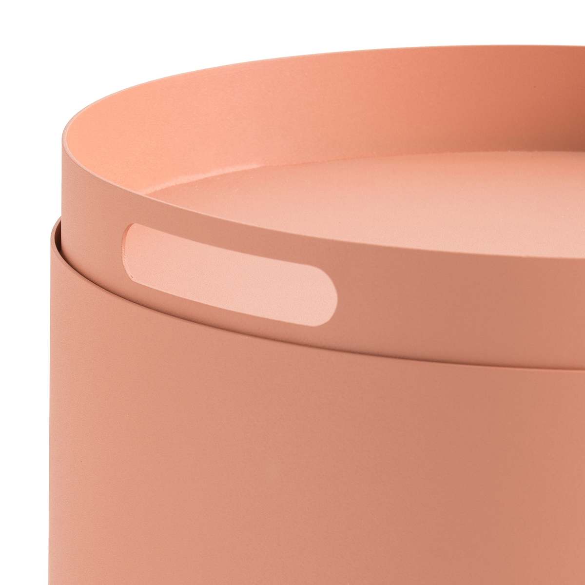 I love this bedside table for its clean, minimal design and soft blush tone, which brings a touch of warmth to both modern and Scandinavian-inspired interiors. Its compact, cylindrical shape and angled legs give it a playful yet functional aesthetic, making it ideal for smaller bedrooms or spaces where a lighter, less bulky piece is desirable. Practical styling tips include layering it with textured lamps, books, or small indoor plants to create a cosy vignette. It works especially well in spaces that mix muted pastel shades with natural materials, adding a subtle pop of colour without overpowering the overall scheme.