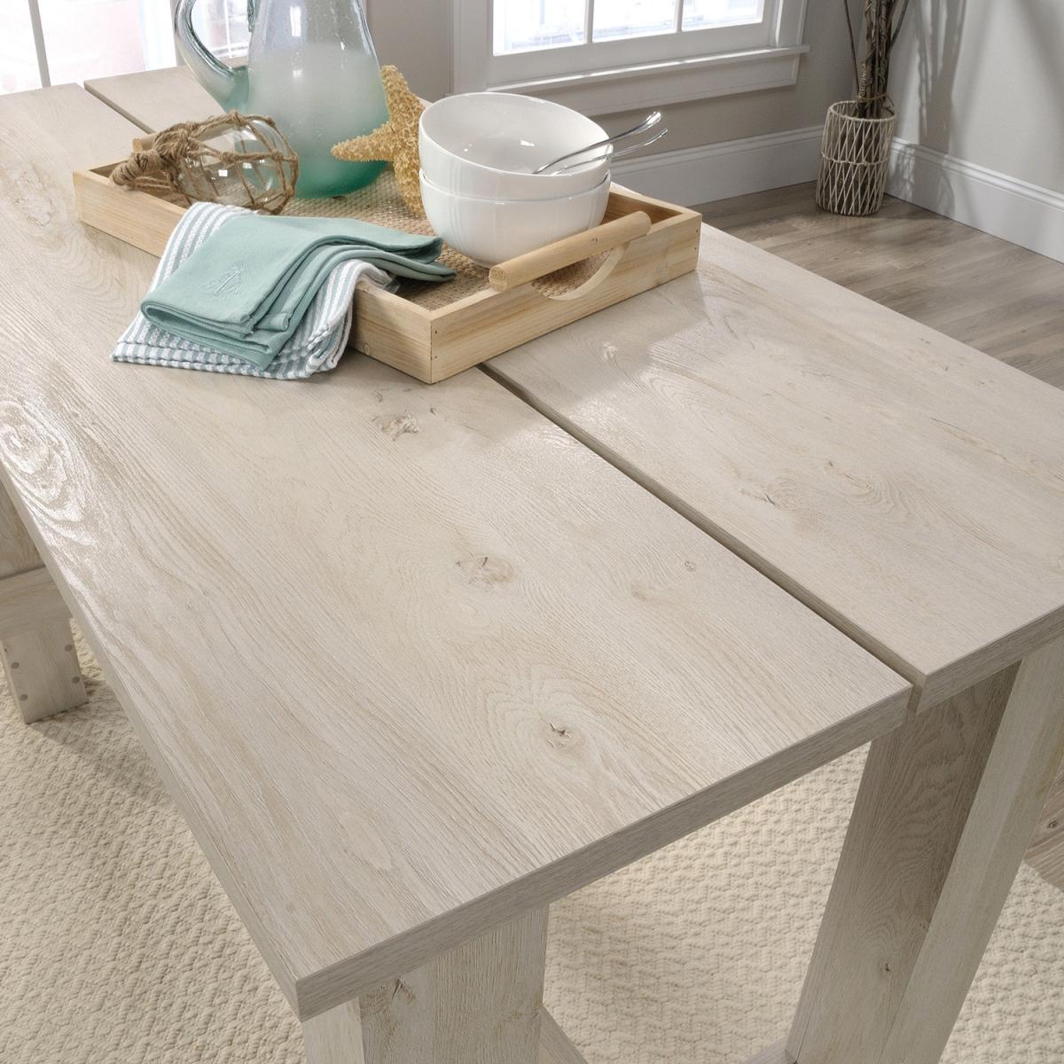 I’m a fan of how this counter-height bench’s chalked chestnut finish adds warmth without feeling heavy, making it equally at home in a Scandi-style kitchen island or a modern farmhouse study. Its clean, straightforward lines work well with metal-framed stools or woven rattan seats for a touch of texture. Keep styling minimal - a slim desk lamp, a neat stationery tray and one or two small plants will break up the geometry and help you stay organised without cluttering the surface.