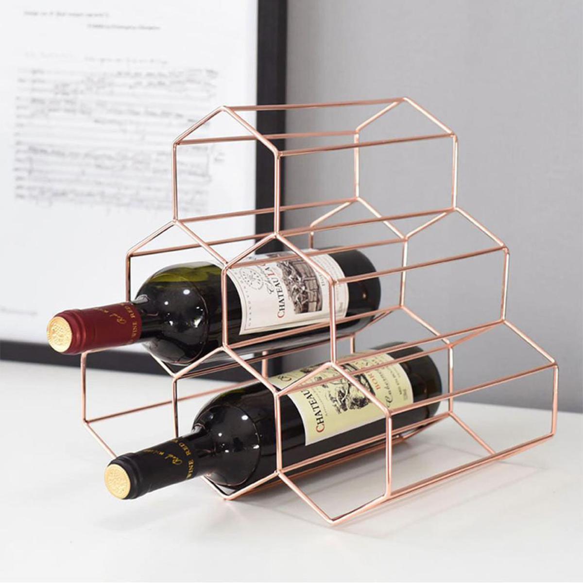 Our Countertop Wine Rack With 6 Bottle Wine Holder is made from high quality iron with a powder coating finish rather than traditional paint, this kitchen wine rack is more resistant to bends, scratches and fading than others. This simple wine rack fits in with any decor. A smooth matte gold finish and minimalist geometric design make this iron wine rack a great addition to any setting whether it be rustic, modern, industrial or any other.
