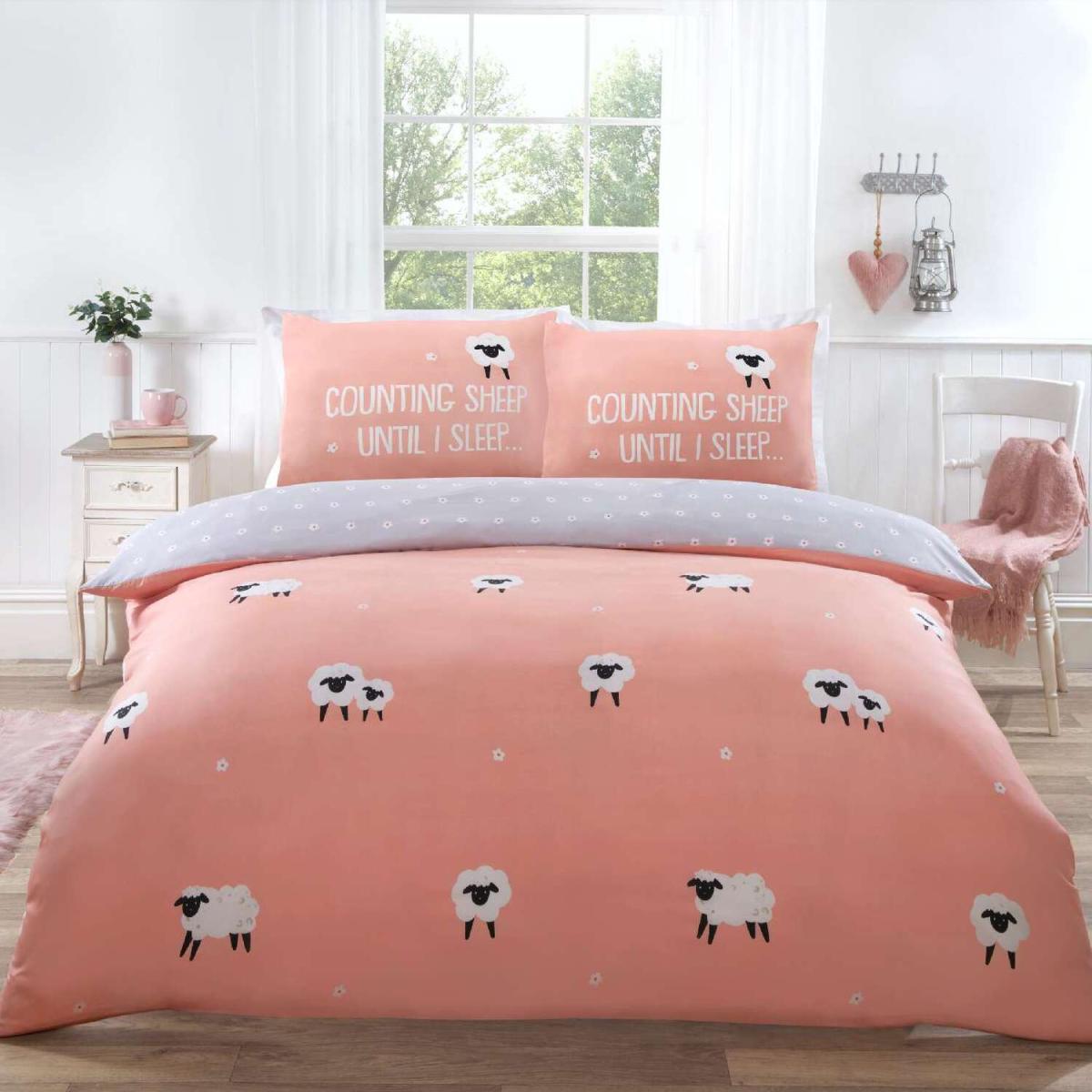 Counting Sheep Microfibre Duvet Set - Blush / Double