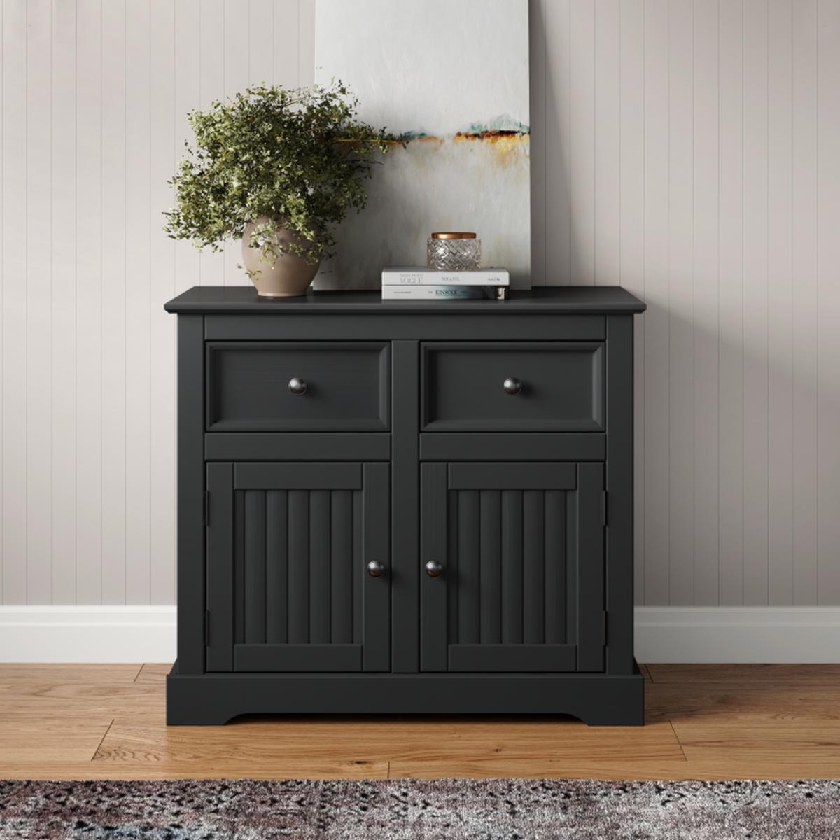 The Mercers Furniture Country Carbon Wax 2 Door 2 Drawer Sideboard is a charming and functional piece of furniture that combines rustic appeal with practical storage solutions. Crafted from solid pine and finished with a rich carbon colour wax, this sideboard exudes a warm, vintage aesthetic that enhances the ambiance of any room. Featuring two spacious drawers and two cabinet doors, the sideboard offers ample storage space for your household essentials, from table linens and cutlery to books and decorative items. The doors and drawers are fitted with elegant round metal knobs, adding to the sideboard's traditional charm. The sturdy construction and classic design make this sideboard a versatile addition to dining rooms, living areas, or entryways, providing both style and organization. Whether used to complement other country-style furniture or as a standout piece, the Mercers Furniture Country Carbon Wax 2 Door 2 Drawer Sideboard is a timeless choice that brings both beauty and utility to your home. Supplied with hardboard backs and drawer bases. Supplied flat pack for easy home assembly. Height - 76cm Width - 87cm Depth - 40cm