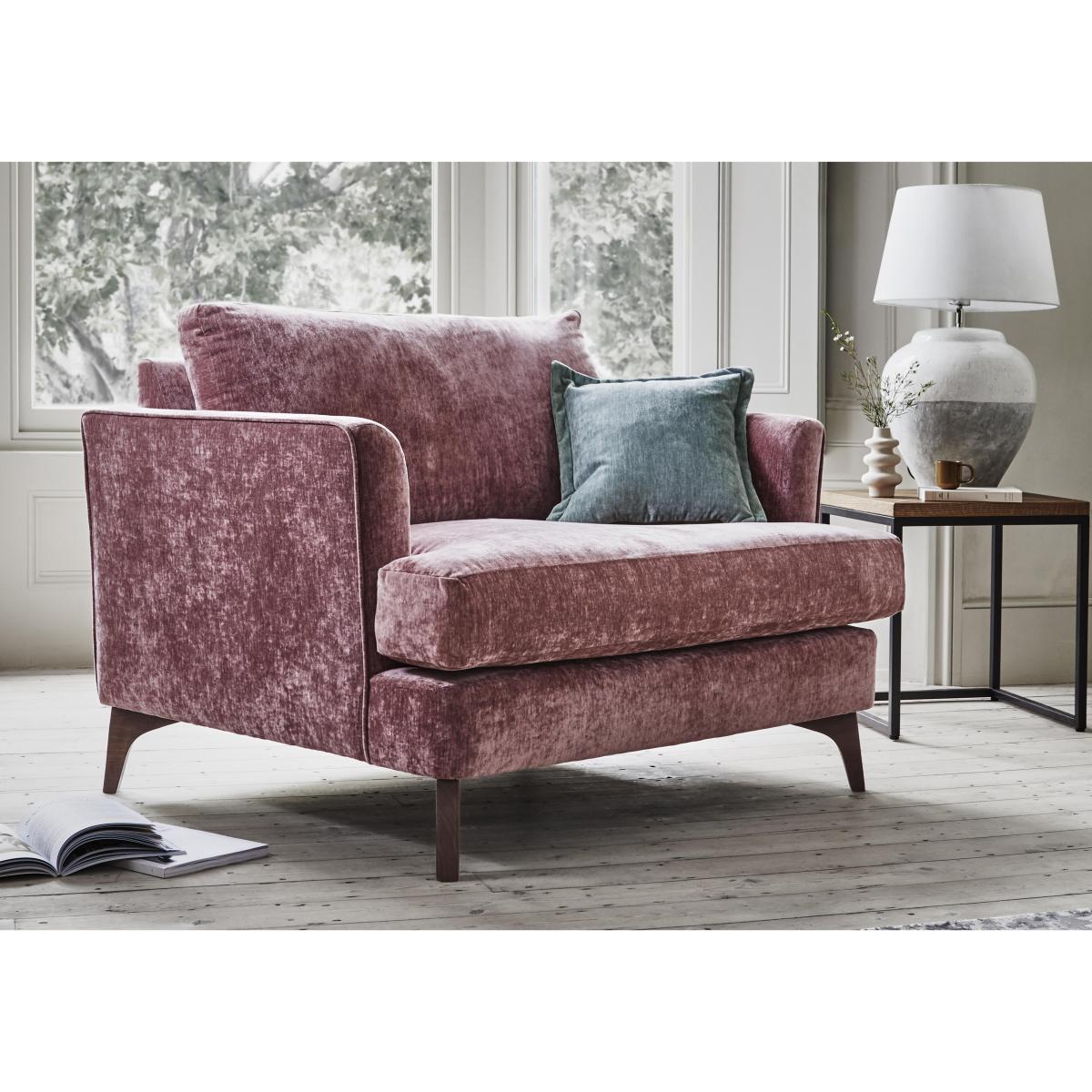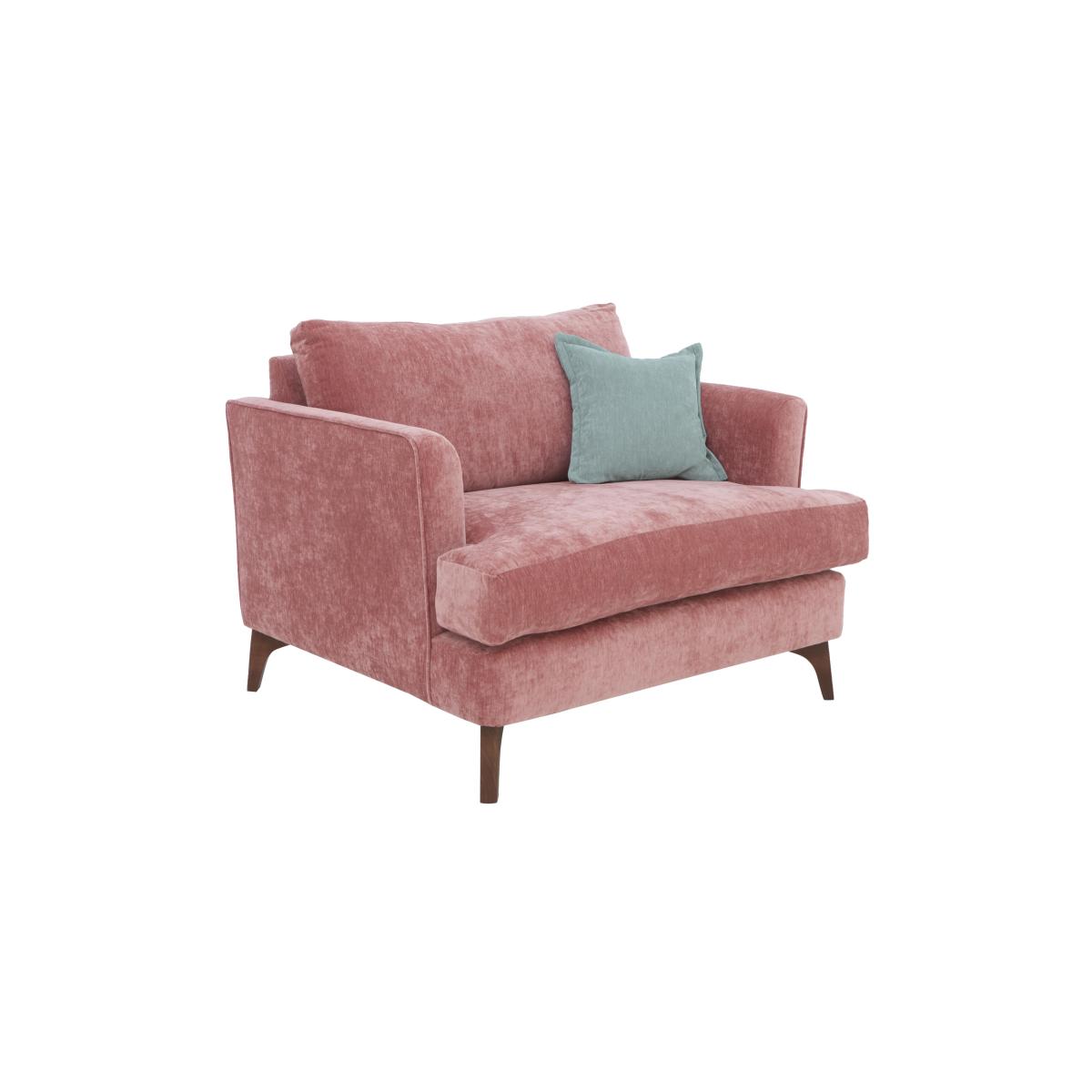 The sofas and snugglers in our Country Collection offer two interpretations of country style – classic Libby with scroll arms and turned legs, and contemporary Lottie with relaxed curves and tapered legs. Whatever you choose, you’ll enjoy comfort beyond belief. Seats and backs are sprung, cushioning is soft and luxurious, and coordinating feather-filled scatters and bolsters are included as standard. Pieces in the Country Collection are offered in a choice of fabric colours and leg finishes, and the range also includes an accent chair and footstool. Beautifully handcrafted and built to last a lifetime, the Country Collection is a Furniture Village exclusive. Our Lottie snuggler chair is the perfect place to unwind with a good book. There’s plenty of room for two but we won’t tell if you decide not to share with a friend. Why you'll love it. With room for two, this snuggler chair is practical as well as stylish. Contemporary country style with curved arms and tapered legs. Built for comfort with sprung seat and back and luxury cushioning. Strong hardwood frame and reversible cushions means you’ll enjoy it for longer. In a choice of sophisticated fabric colours. Wood legs in a choice of 2 finishes. Comes with a feather-filled scatter cushion in a coordinating fabric. Handmade in the UK exclusively for Furniture Village. This snuggler is part of the Country Collection range. What you need to know. Medium comfort level. Seat suspension: serpentine springs. Seat cushioning: foam wrapped in fibre. Seat cushion is reversible. Back suspension: webbing. Back cushioning: fibre. Back cushion is reversible. Feet are removable. Some fabrics can show wear on areas of more use or in direct sunlight. Plump and straighten seat and back cushions daily, and rotate cushions regularly. Please read our upholstery care guide for more advice.
