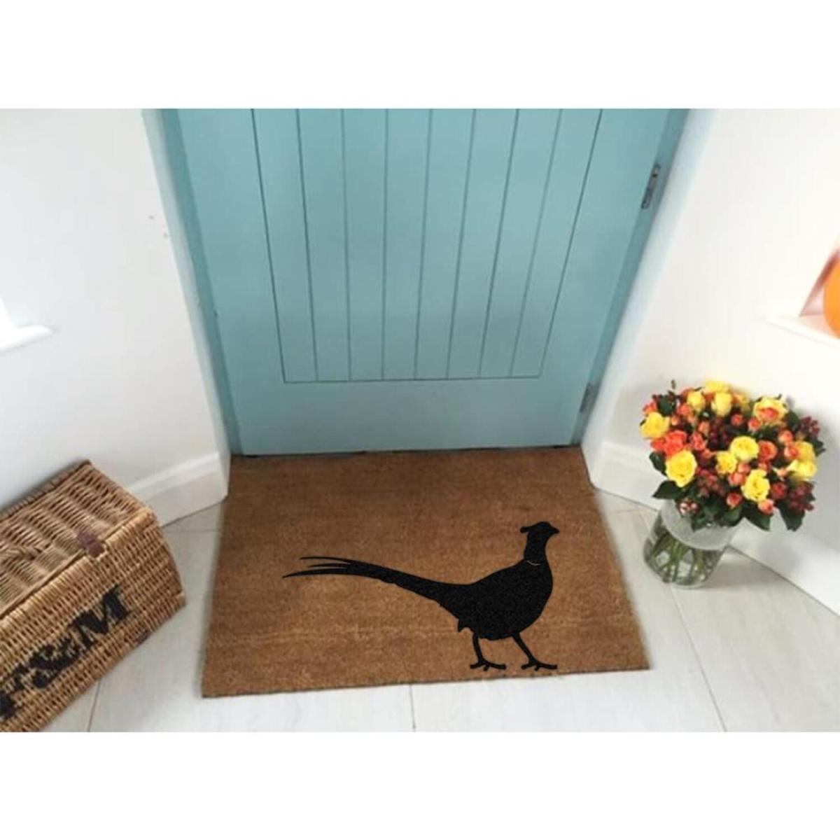 Welcome your guests with an impressive extra large Pheasant doormat. Give you and your guests a grand welcome to your home with a designer doormat from Artsy. All Artsy Doormats are crafted from a high-quality tufted coconut fibre!Artsy Doormats are professionally dyed using exterior paints made to be durable and stick to the coir, whereas some others on the market are made using food dyes and not made to last. - Extra Large 90cm by 60cm- Made with a non-slip PVC backing- Natural coir (coconut fibre)- Suitable for indoor outdoor sheltered use- Hand finished in the UK- Perfect for your home. Choose the perfect design for your home.
