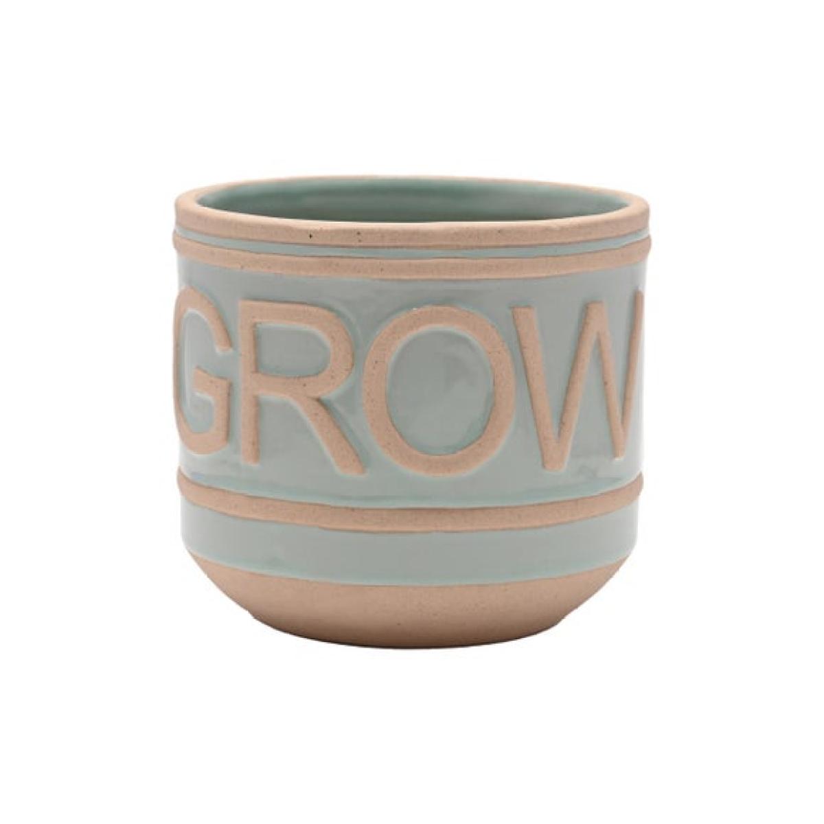 * Set of 2 pots * Ceramic * Embossed text * Indoor or outdoor use Give a little encouragement to your plants with this Set of 2 Ceramic Plant Pots. The smaller blue pot reads, 'Grow', and the larger pink pot 'Bloom' in a gorgeous embossed glossy finish - perfect for bringing some colour to your floral displays, either inside or out.