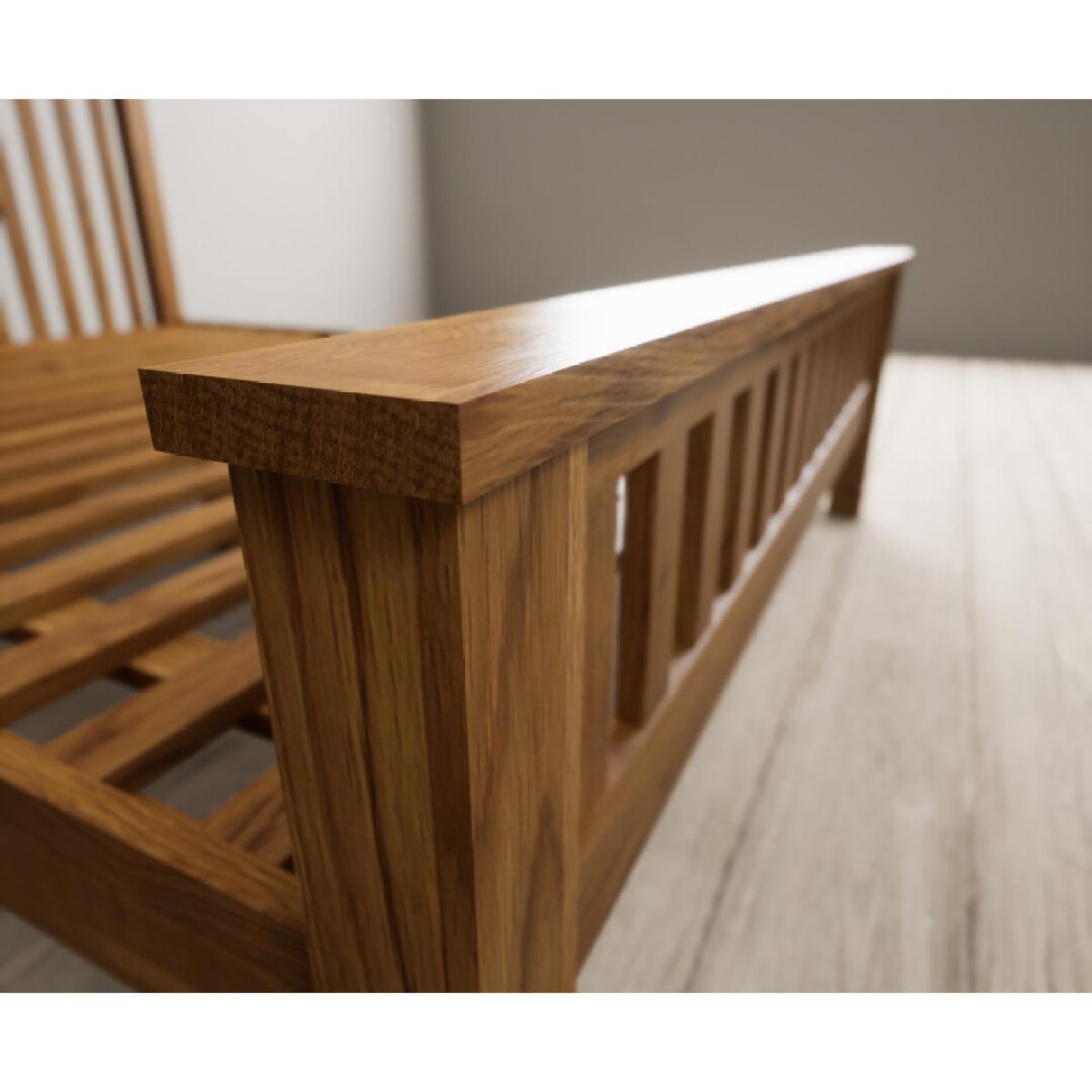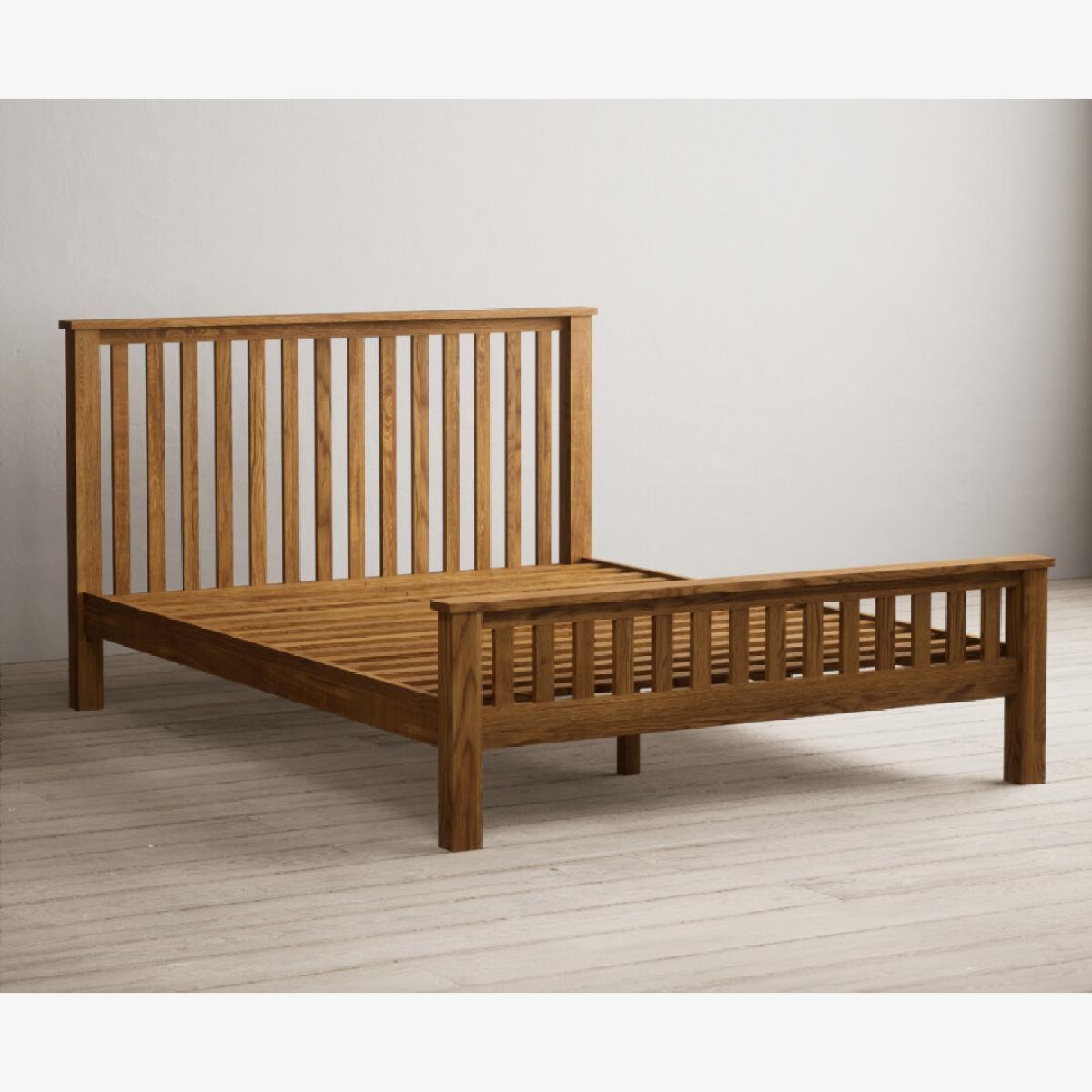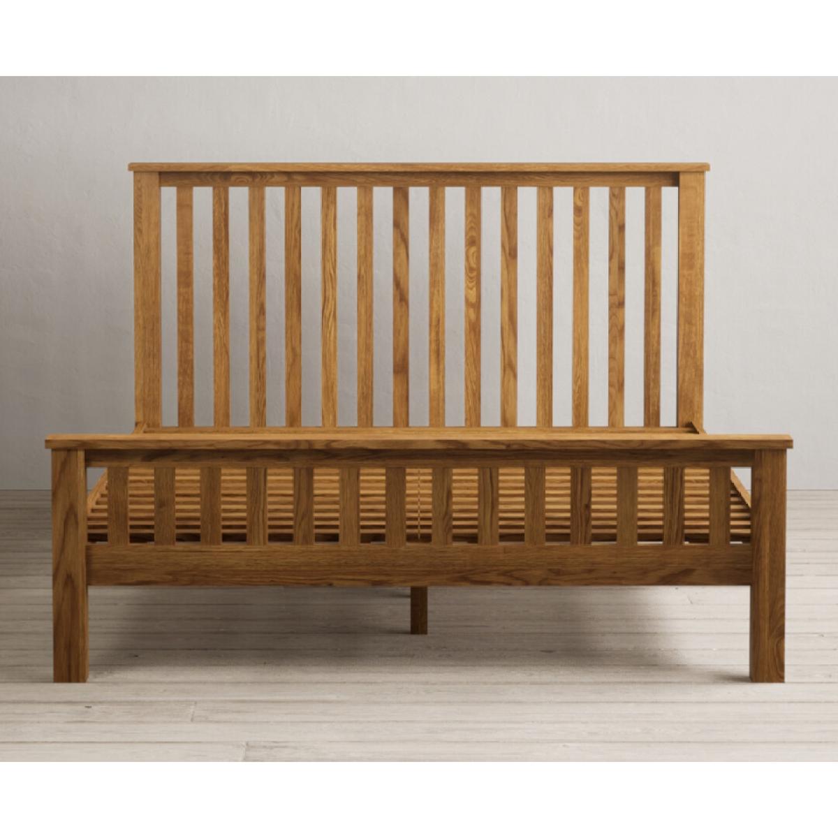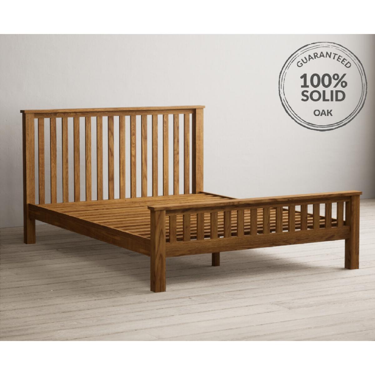 The Country Rustic Solid Oak King Size Bed is crafted from 100% solid oak with a rustic finish and features a panelled design on the headboard and footboard.