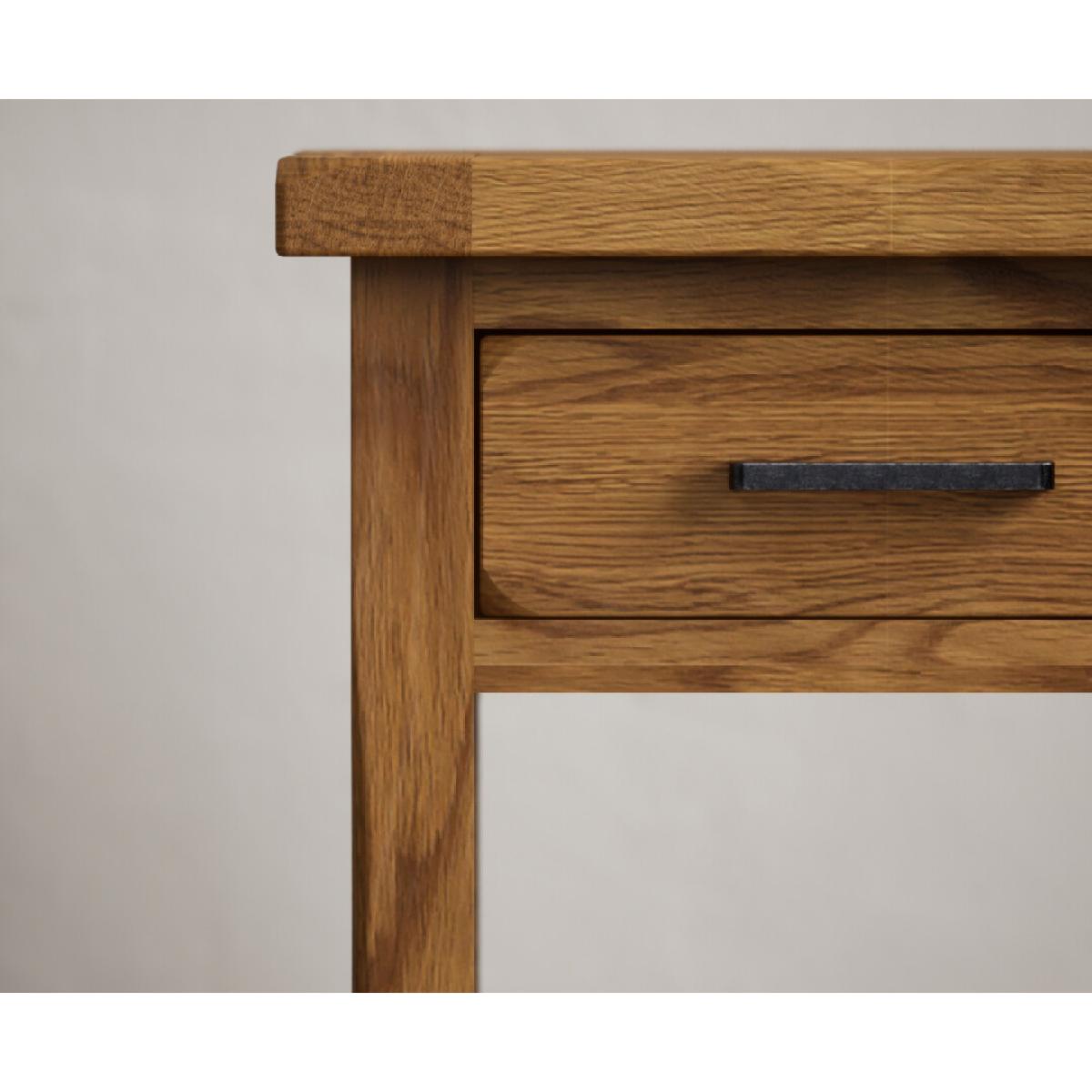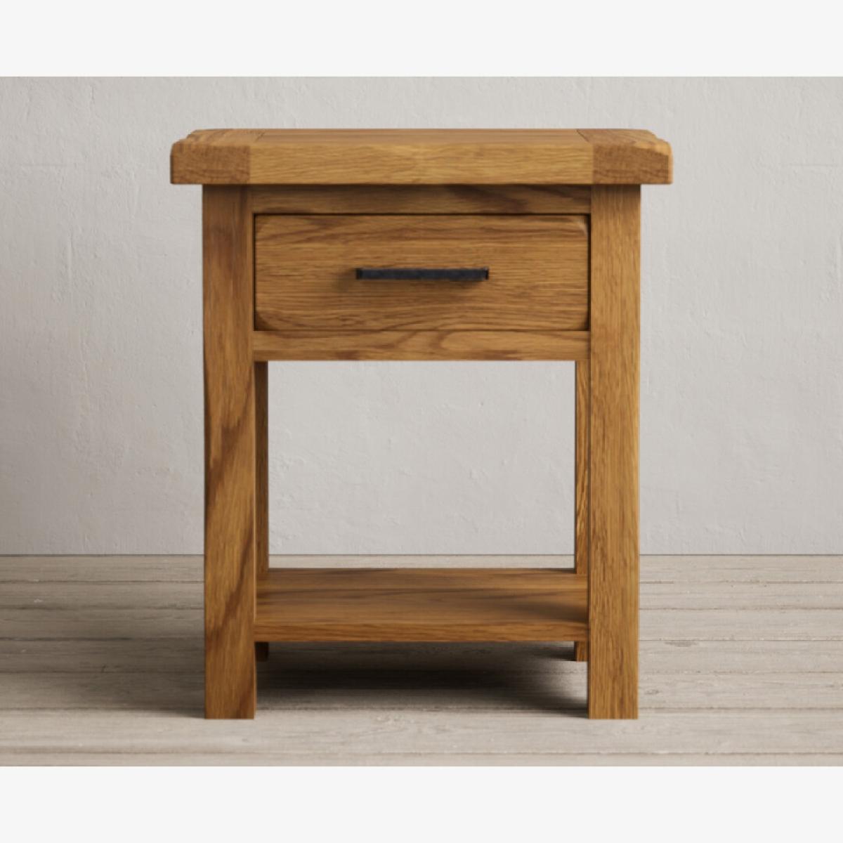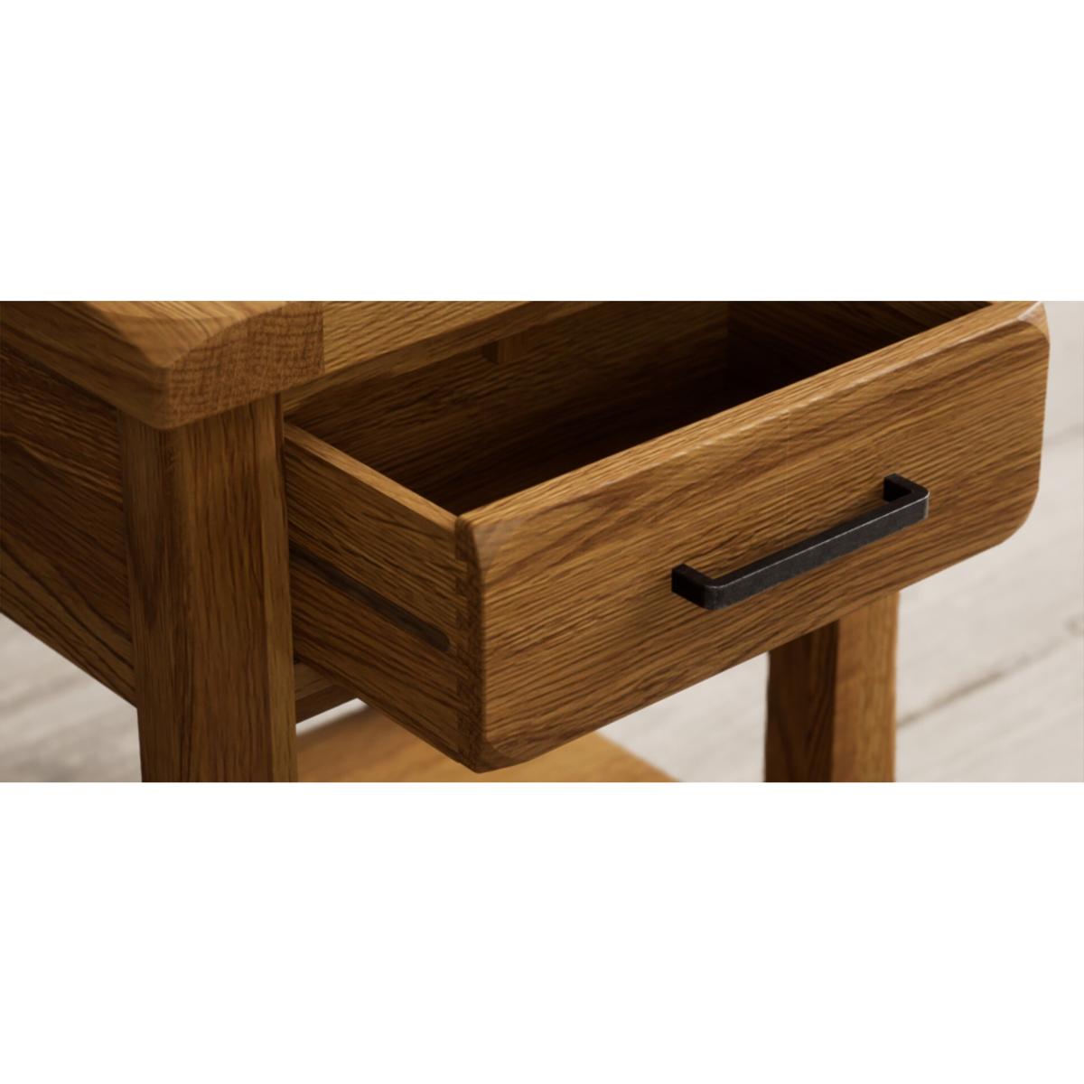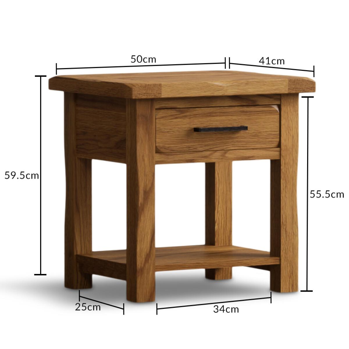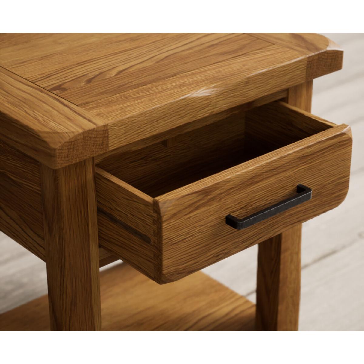 The Country Rustic Solid Oak Lamp Table has been crafted from 100% solid oak with a rustic finish and features a handy dovetail drawer.