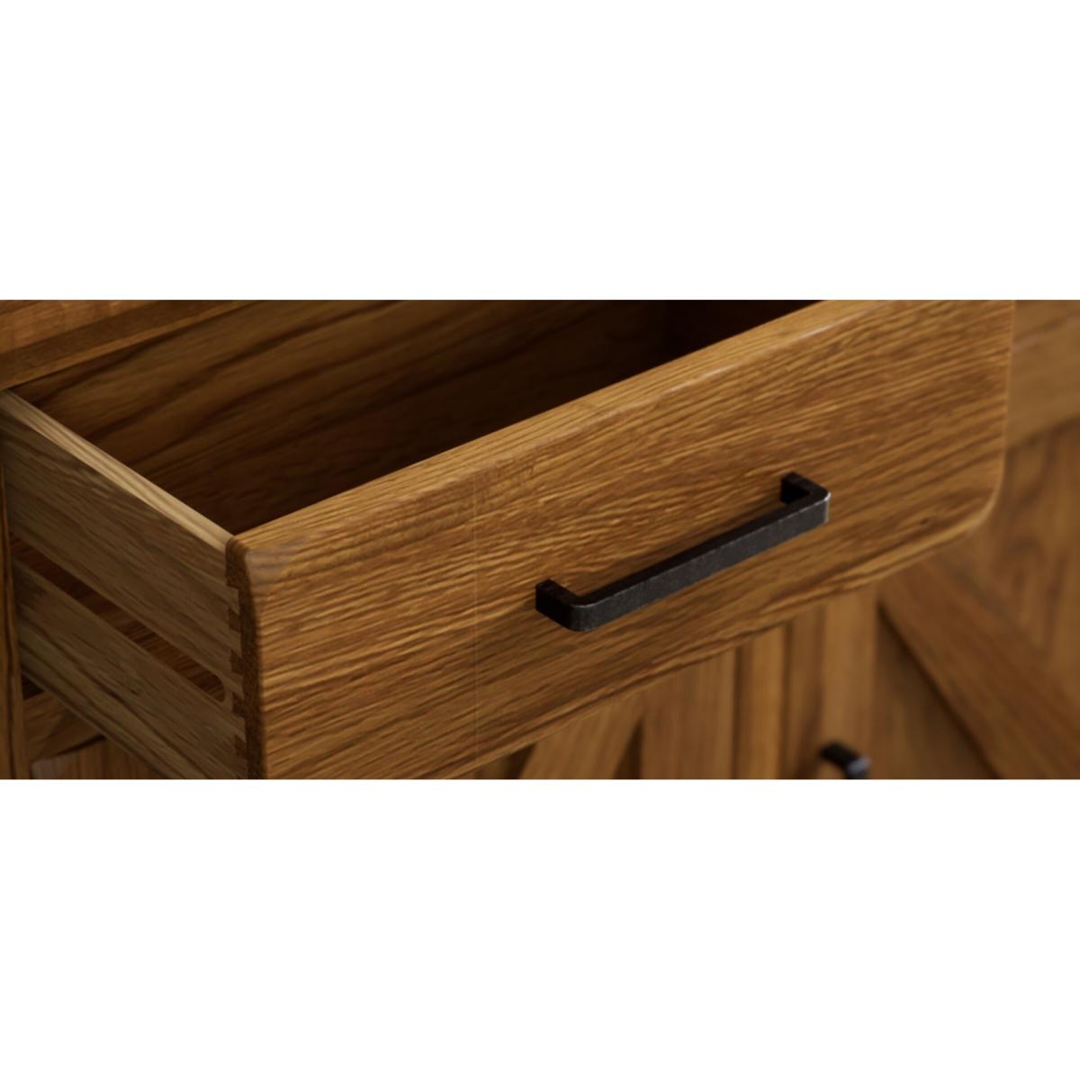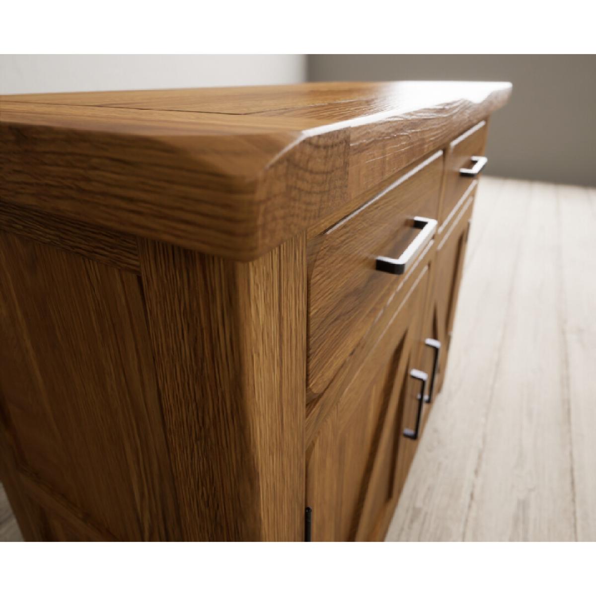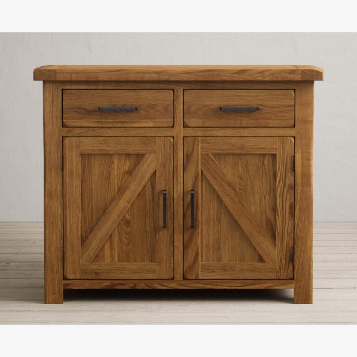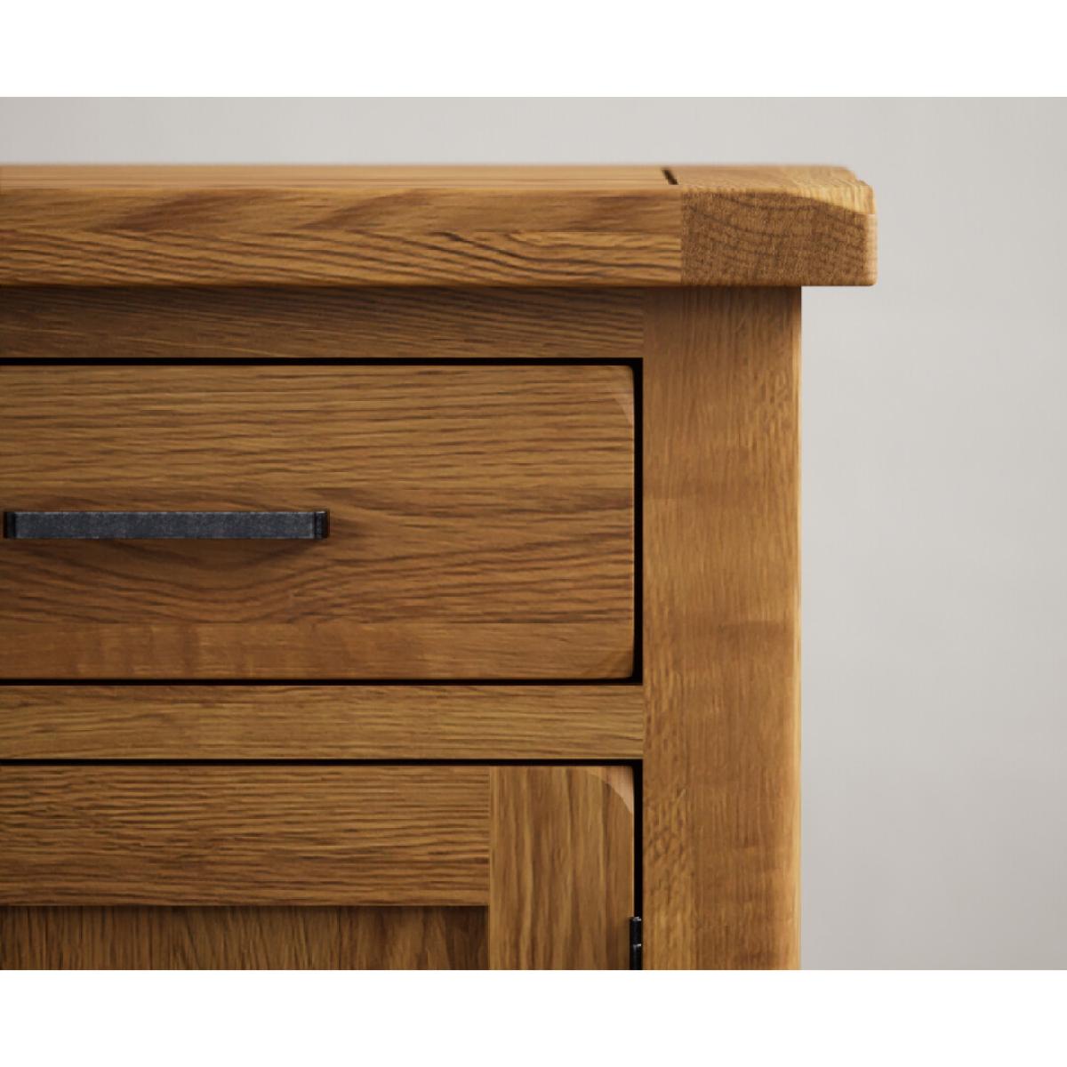 The Country Rustic Solid Oak Small Sideboard is crafted from 100% solid oak with a rustic finish and features dovetail drawers with wooden runners and metal handles.