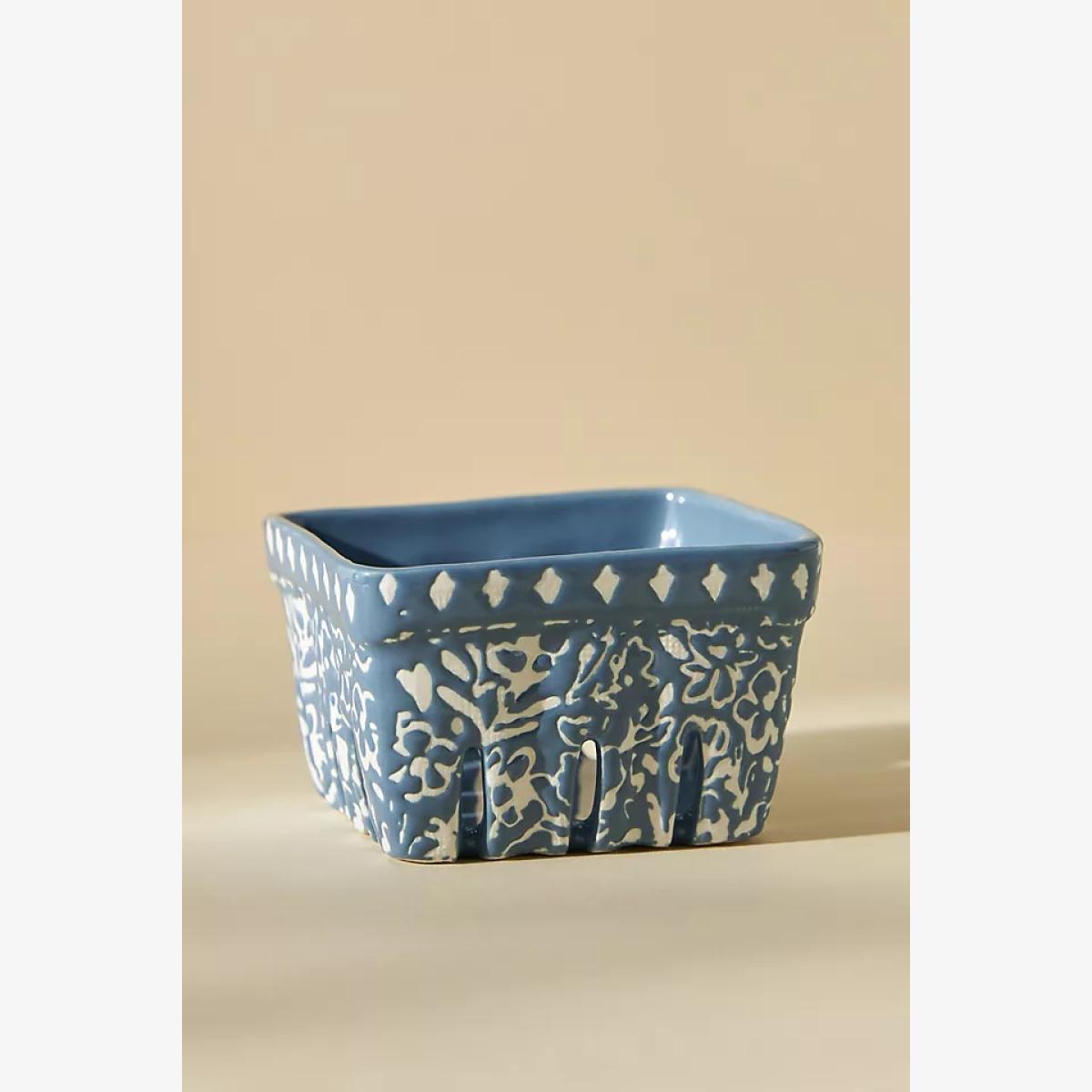 Wash, serve, and store seasonal berries in this charming ceramic basket that features countryside-inspired motifs. Whether placed on the table or tucked into your fridge, its sweet design is sure to bring a wink of whimsy to your day. Countryside Berry Basket by Anthropologie in Blue