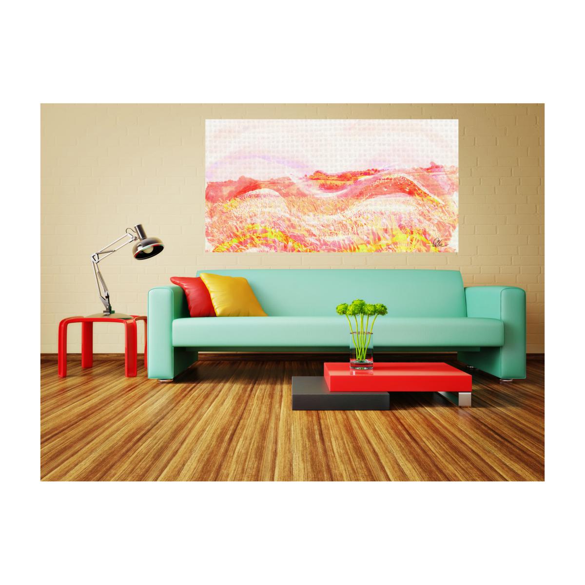 The Countryside Wheat Field print is a fantastic choice for adding a warm, natural touch to a variety of interiors. Its bright orange tones work particularly well in modern, lively spaces or earthy schemes, bringing a pop of colour that energises the room. It pairs beautifully with neutral furniture and wooden accents, as shown in the example with pastel and primary colours, making it versatile across both contemporary and rustic styles. For practical styling, consider positioning it above a sofa or sideboard, and keep surrounding accessories minimal to let the artwork be the focal point. This piece is especially effective in brightening open-plan living areas or bedrooms, creating a welcoming, visually appealing feature.