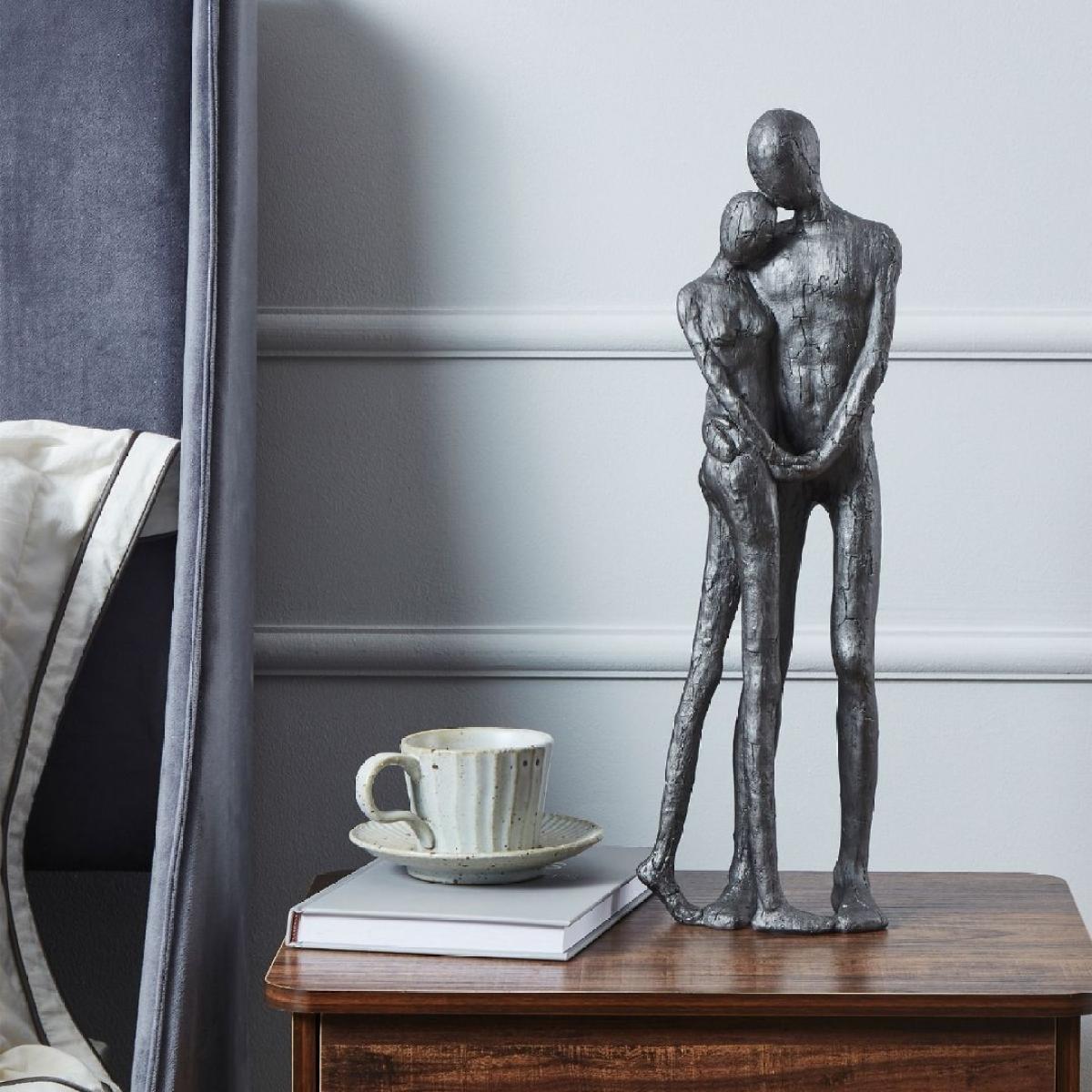 Ornamental sculpture of a couple locked in an embrace, made from metal and featuring a modern, minimalist design. A captivating piece that blends modern artistry with minimalist design, this sculpture features a sleek and simplified representation of a couple embracing one another, emphasising clean lines and abstract forms. Crafted from metal, its minimalist design adds a contemporary touch to any space, making it a perfect accent for modern interiors. Whether displayed on a shelf, mantel or desk, this sculpture serves as a unique and stylish statement piece. The combination of its artistic simplicity and metal construction gives it a timeless appeal, making it a versatile addition to your decor that inspires a sense of love and romance. Ornamental sculpture of a couple locked in an embrace, made from metal and featuring a modern, minimalist design. A captivating piece that blends modern artistry with minimalist design, this sculpture features a sleek and simplified representation of a couple embracing one another, emphasising clean lines and abstract forms. Crafted from metal, its minimalist design adds a contemporary touch to any space, making it a perfect accent for modern interiors. Whether displayed on a shelf, mantel or desk, this sculpture serves as a unique and stylish statement piece. The combination of its artistic simplicity and metal construction gives it a timeless appeal, making it a versatile addition to your decor that inspires a sense of love and romance.