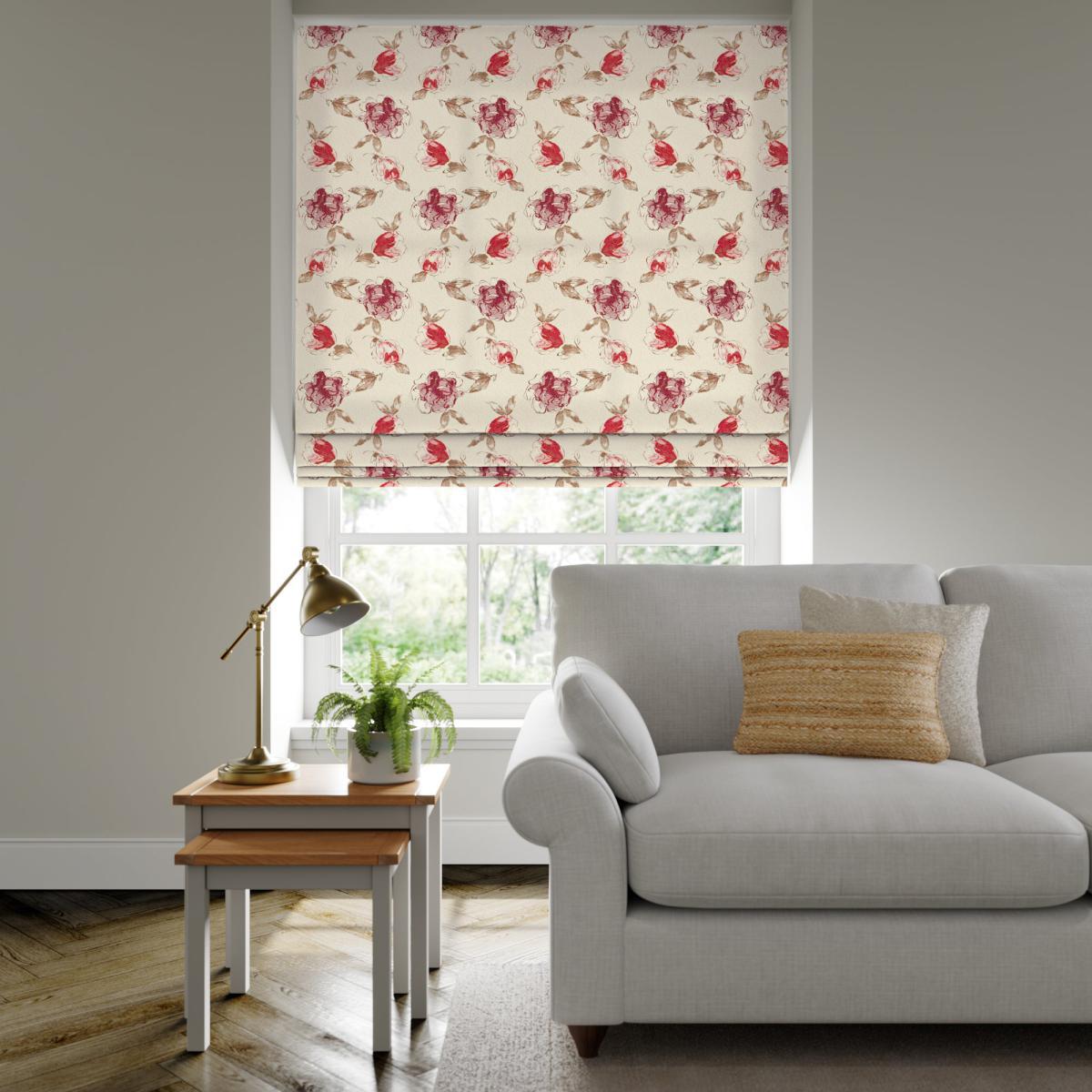 * Choose from 3 linings* Select your fitting type* Pick a side for the operating chain Stunning florals fill the Courtney range of Roman Blinds to help welcome a personal touch into your home.**Choosing your lining:*** Blackout provides minimal light disturbance in your home making it perfect for bedrooms. * Thermal helps to keep the warmth in and the cool air out meaning it’s great for family rooms or lounges. * Our Standard Lining is perfect if you like the glow of natural light whilst your curtains are closed whilst still maintaining your privacy.**Choosing your fitting type:*** Inside the recess: this gives a tidy, snug finish as it’s made to fit your window exactly. * Outside the recess: this option is great if you don’t want the blind to be visible from the outside when it’s drawn up.**Choosing which side you’d like the operating chain:*** Think about where your blind will be situated and what furniture may be near it – choose the side that is easier for you to access.**Need help deciding or measuring?**Book a free appointment with one of our consultants! dunelm. com/category/made-to-measure/book-an-appointment).**Child Safety:**We add clips to the back of our roman blinds to attach the cords to the fabric. They also double up as a child safety feature. If pressure is exerted the clips will detach to prevent the risk of strangulation. Please read our [Blinds Safety Guide](https://www. dunelm. com/info/buying-guides/blinds-safety-guidance) for more information. If the clips detach accidentally during normal use, they can be easily re-clipped back into place. Please note: If your measured width is over 130cm your blinds may come with a fabric join to provide the full width required.