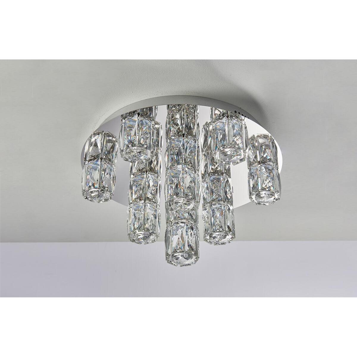 A match made in heaven for eclectic decors, our Cova ceiling flush light is all about standing out from the crowd. This striking fitting will flood the room with sophistication, thanks to its faceted glass shades and shiny chrome-finished plate. The Cova is the go-to fitting for high ceilings, open plan decors and modern homes in need of some oomph.